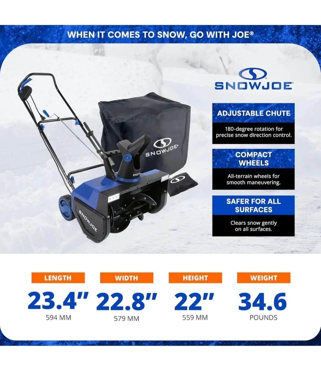 Selling a Snow Joe electric snow blower! It's BRAND NEW never been used and ready to clear some snow. It features a 22-inch wide and 13-inch deep clearing path. The chute is adjustable up to 180 degrees. Get ready for winter!