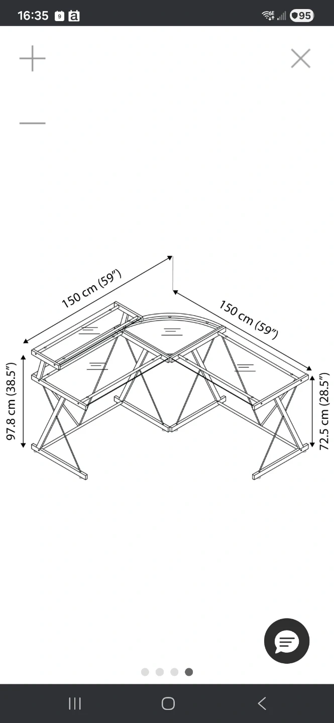 Selling a glass corner desk with a black metal frame. It's in great shape and perfect for a home office or study space. The desk features a sleek, modern design with a glass top and a sturdy black metal frame. Dimensions are 150 cm (59") x 150 cm (59") with a height of 97.8 cm (38.5"). Also in deal is a Black Executive Office Chair. The chair recliner and has a foot rest. It supports 400 lbs and is like brand new. This is a great deal for some one looking to furnish a home office for low price with quality products.
