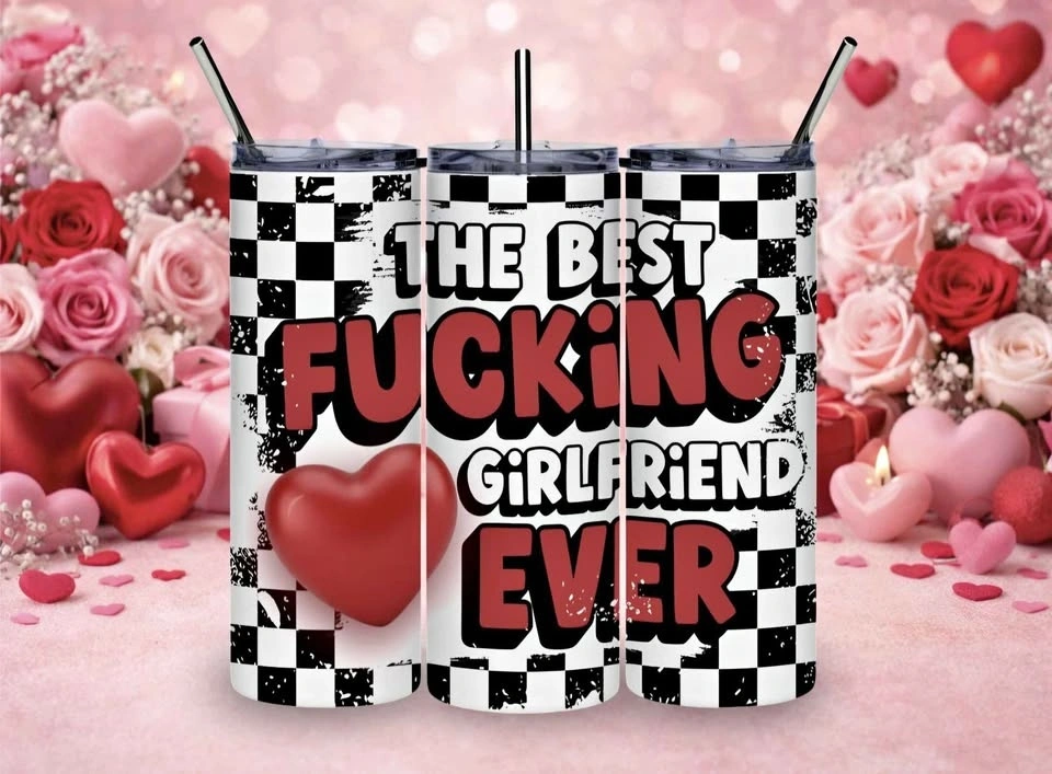 "BEST F*CKING GIRLFRIEND" Valentines day tumbler. Double wall stainless steel, comes with plastic lid and metal straw.
