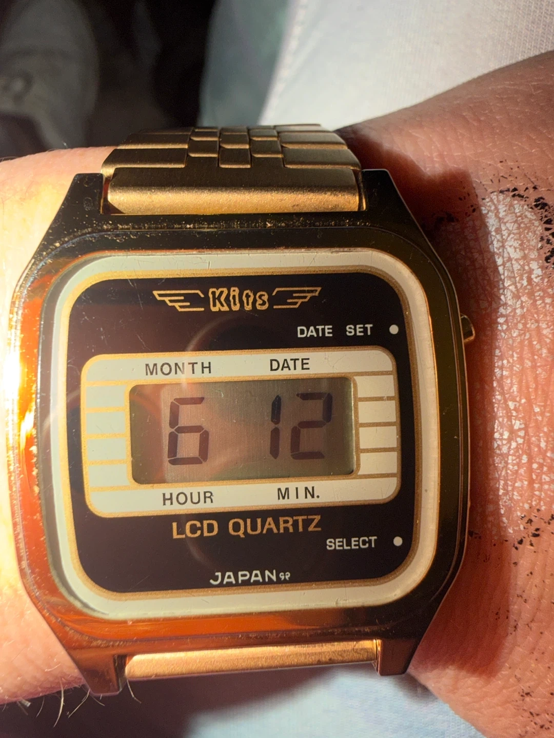 Selling a Kits LCD Quartz watch with a gold finish