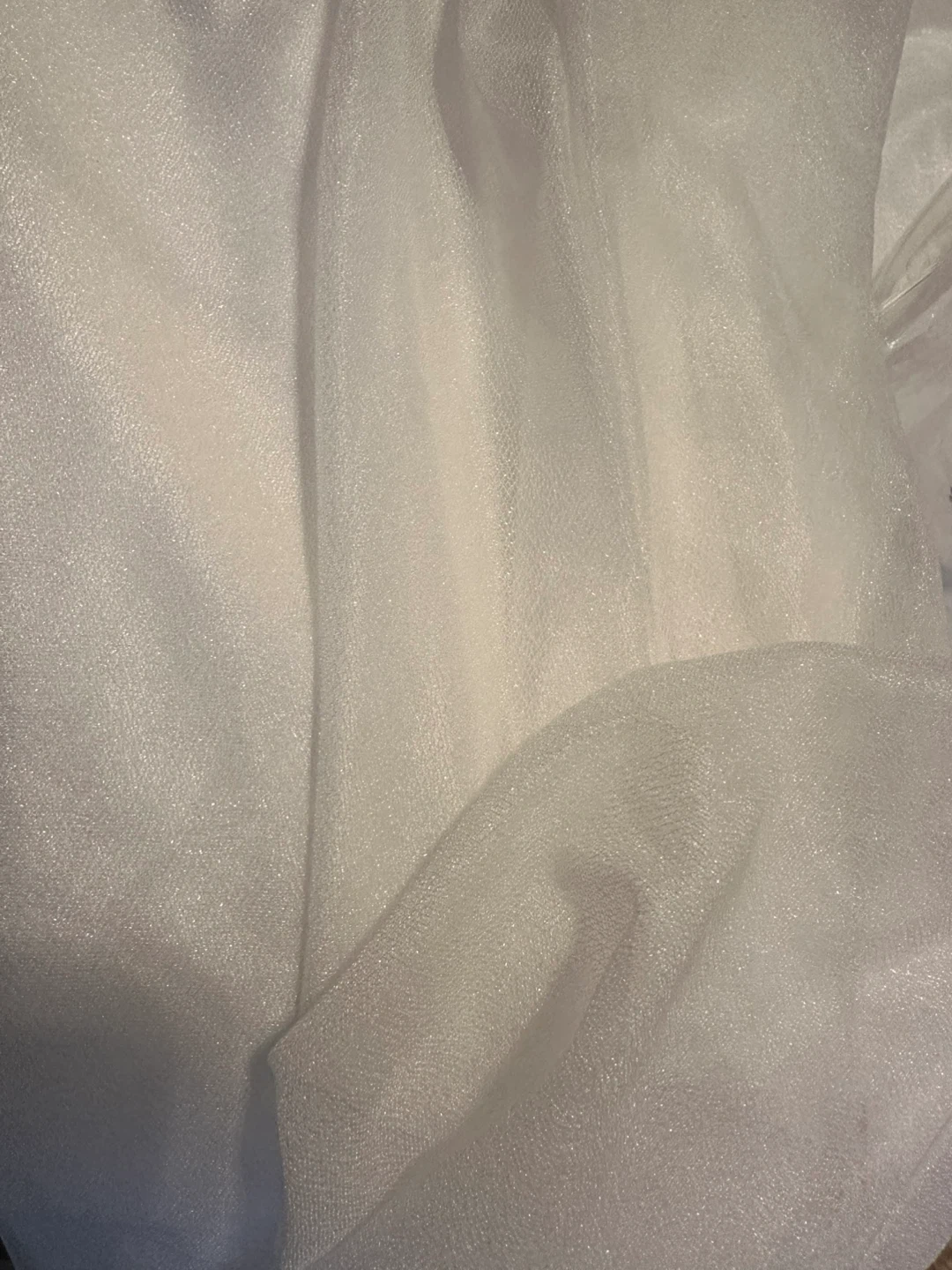 Add a touch of elegance to your next event with this sheer, glittery, white table skirt! It measures 76cm/30in in height, with a length of 274cm/9ft. Perfect for parties, weddings, or any special occasion! Attaches by Velcro.