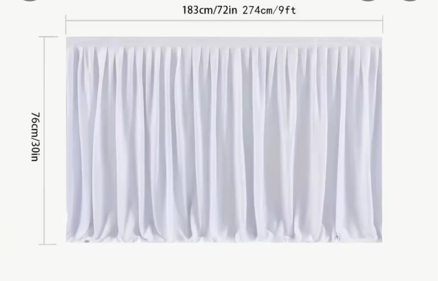 Add a touch of elegance to your next event with this sheer, glittery, white table skirt! It measures 76cm/30in in height, with a length of 274cm/9ft. Perfect for parties, weddings, or any special occasion! Attaches by Velcro.