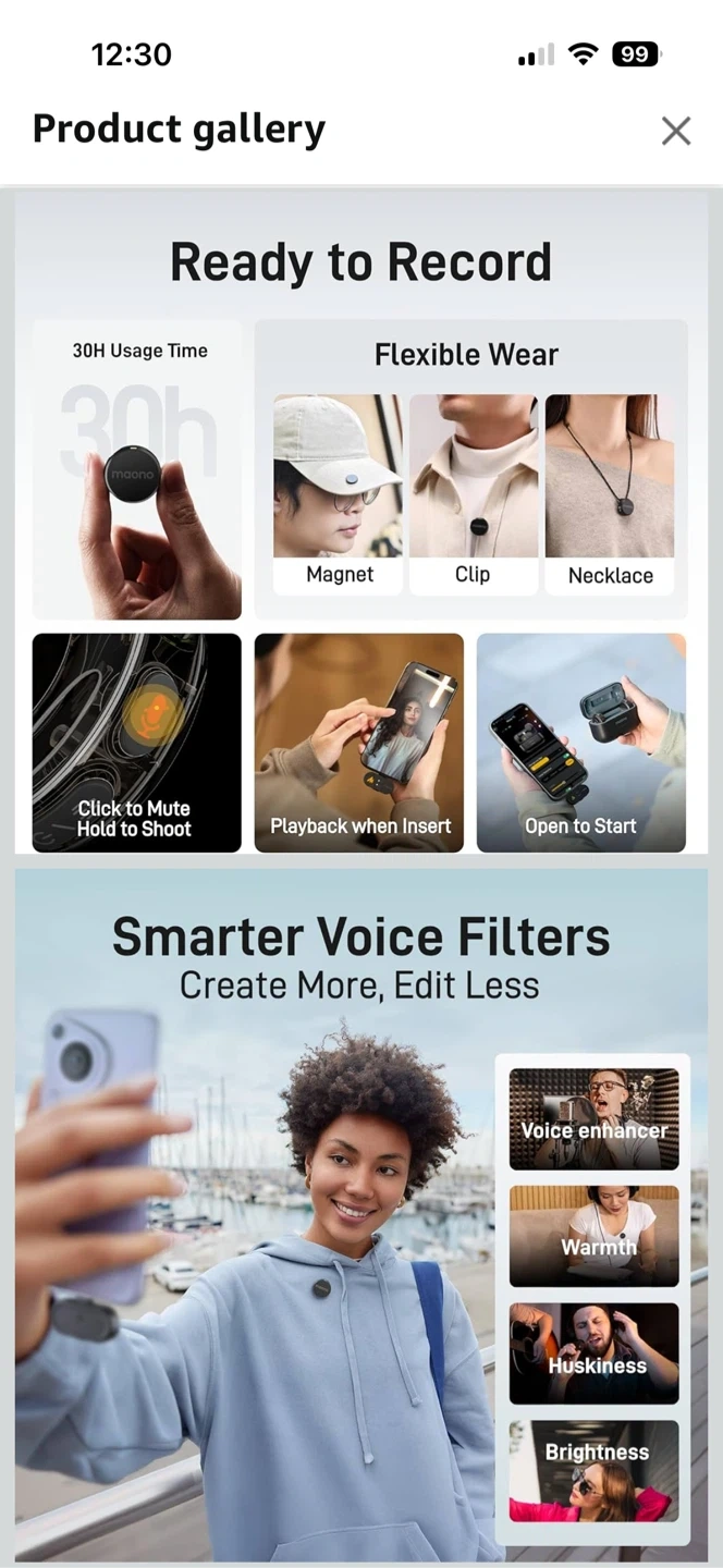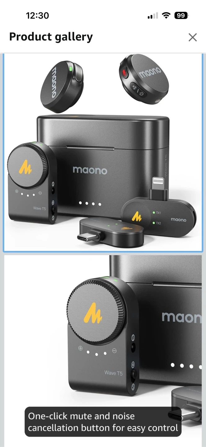 Selling a brand new Maono Wave T5 wireless lavalier microphone! This all-in-one package includes everything you need for studio-quality audio recording. It's widely compatible with various devices, including cameras, laptops, and PCs, thanks to its USB-C, Lightning, and 3.5mm receivers. The package includes: