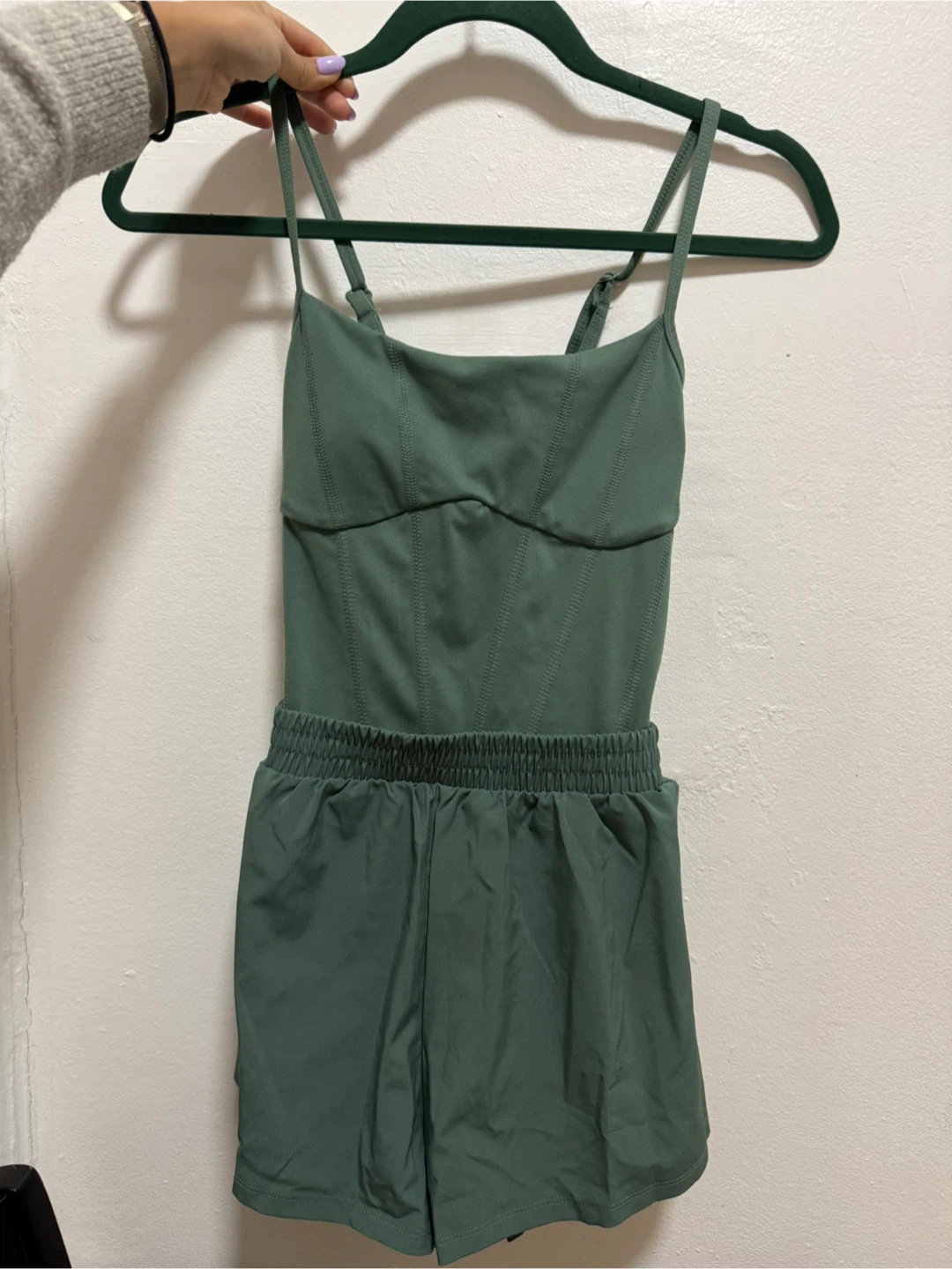 Selling a Pink green bodysuit in new condition! It is a size S and is perfect for workouts or everyday wear. The material is comfortable and breathable, making it great for any activity. Feel free to message me with any questions!