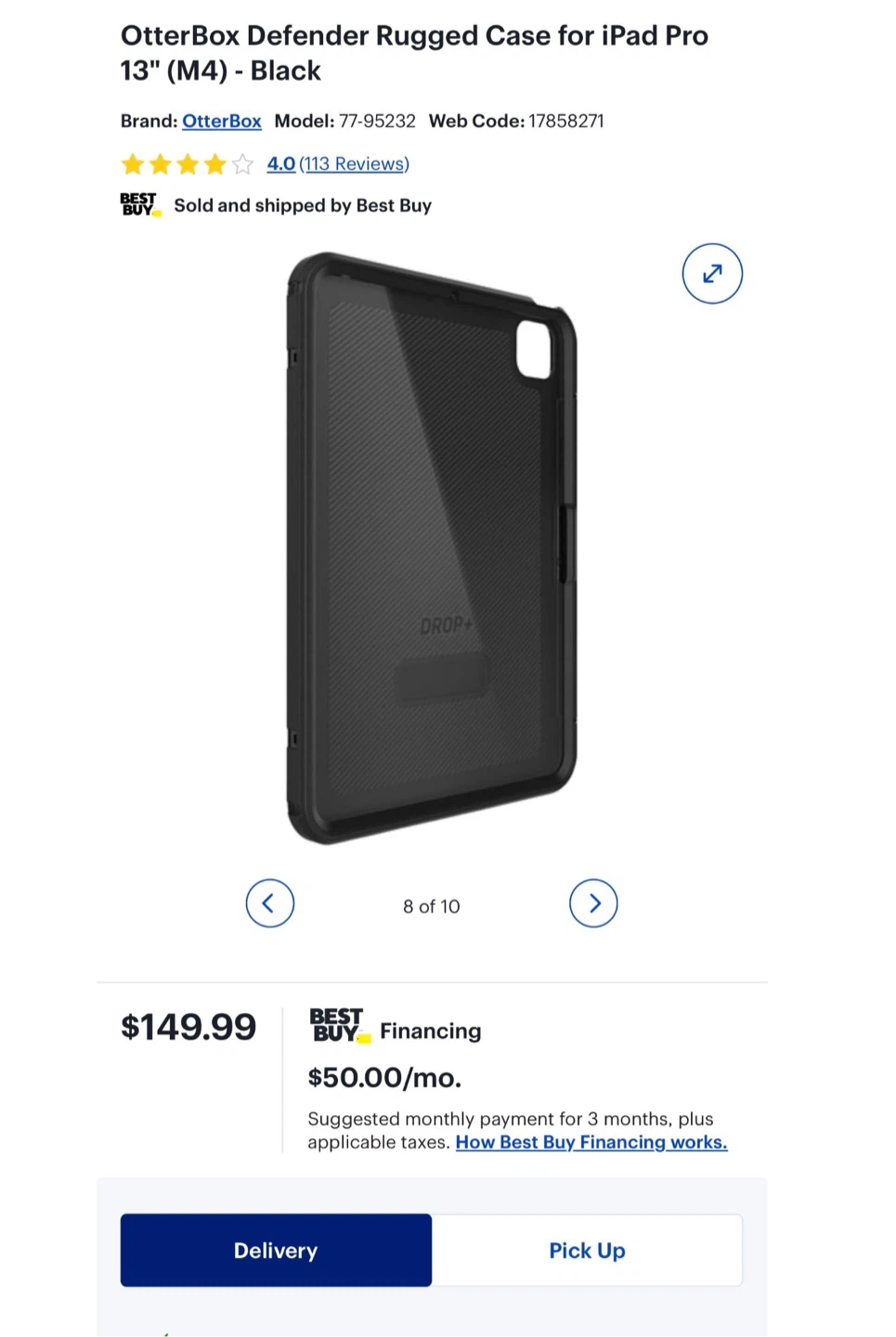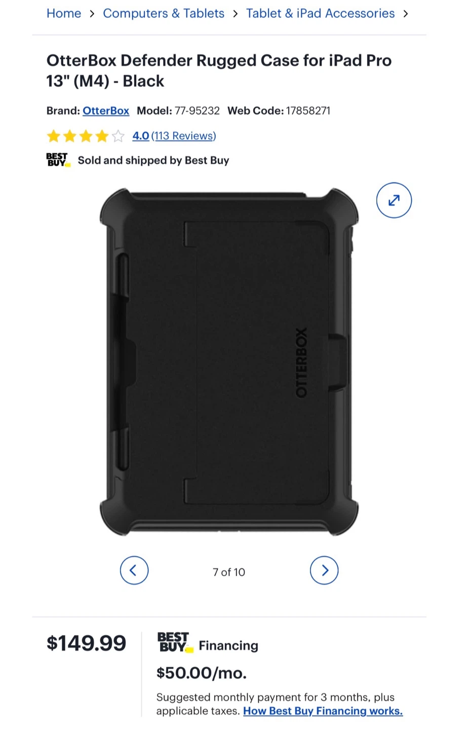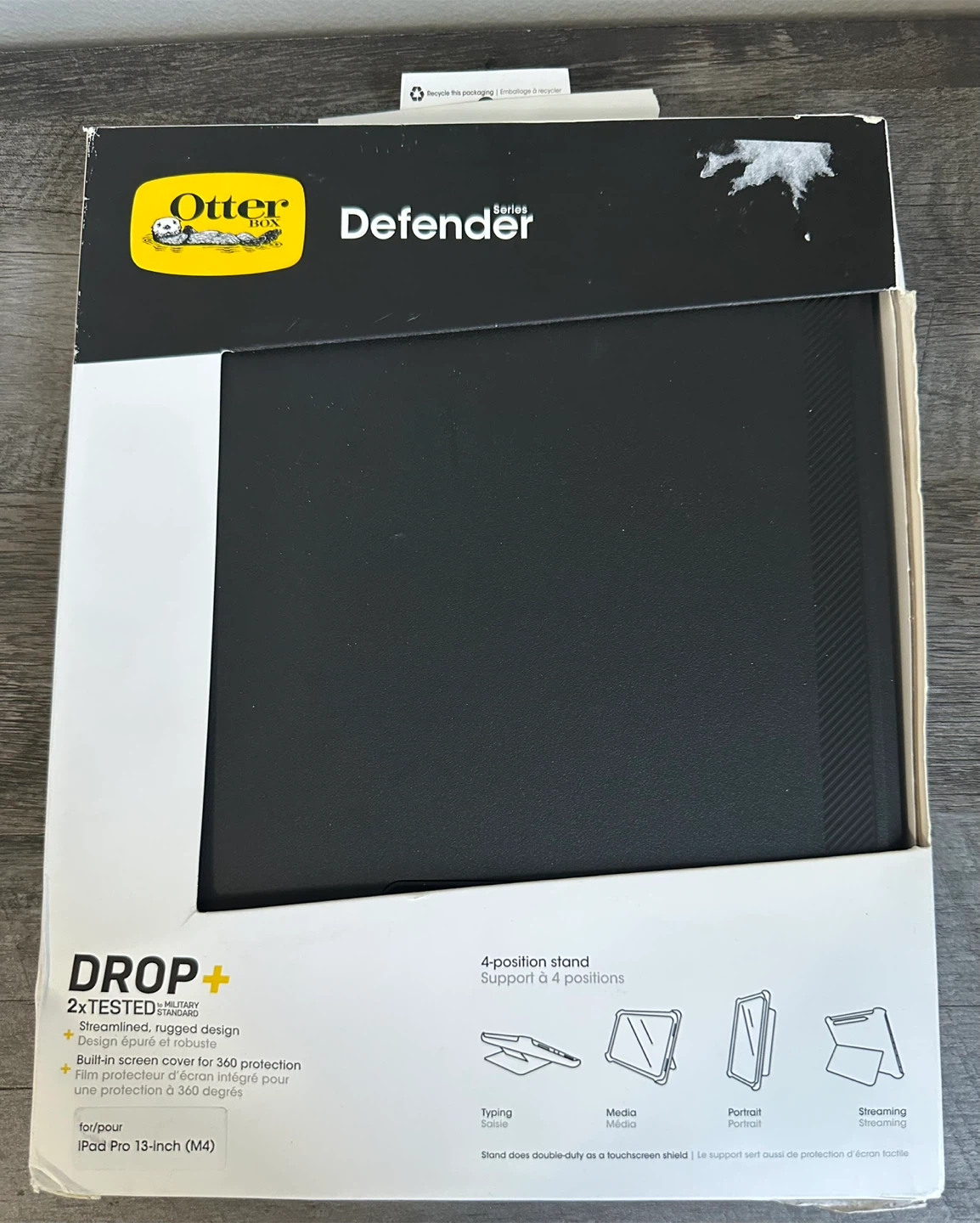 Selling a black OtterBox Defender Rugged Case for the 13-inch iPad Pro (M4)! This case offers streamlined, rugged design and has been 2x tested to meet military standards. It features a built-in screen cover for 360-degree protection. The case also has a 4-position stand for typing, media viewing, portrait mode, and streaming. retails for $149.99, this case provides double-duty protection with a touchscreen shield