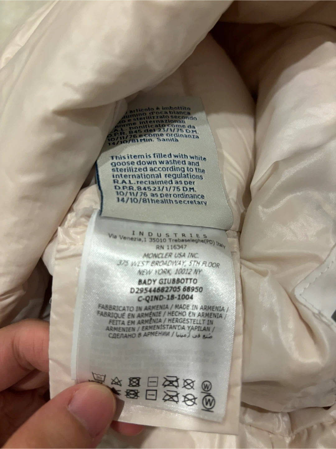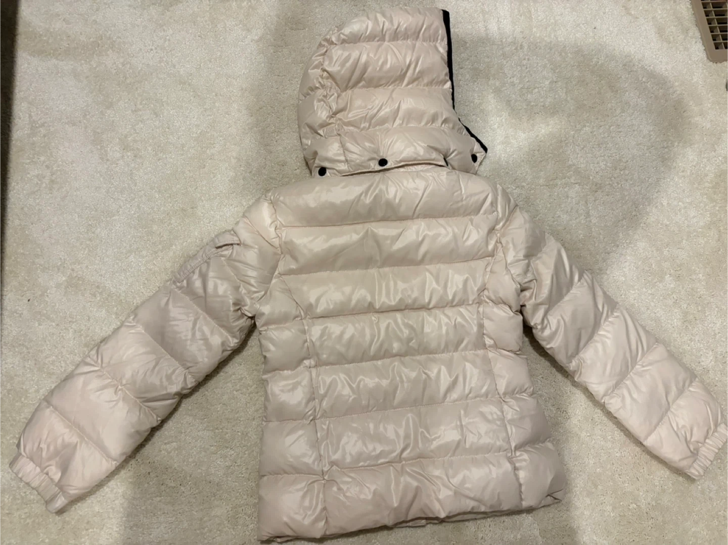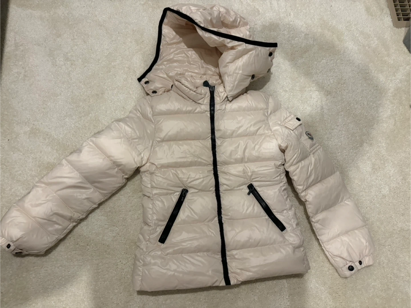 Selling a Moncler kids' down puffer jacket -Bady in a light pink color. Perfect for keeping your little one warm and stylish during the colder months!