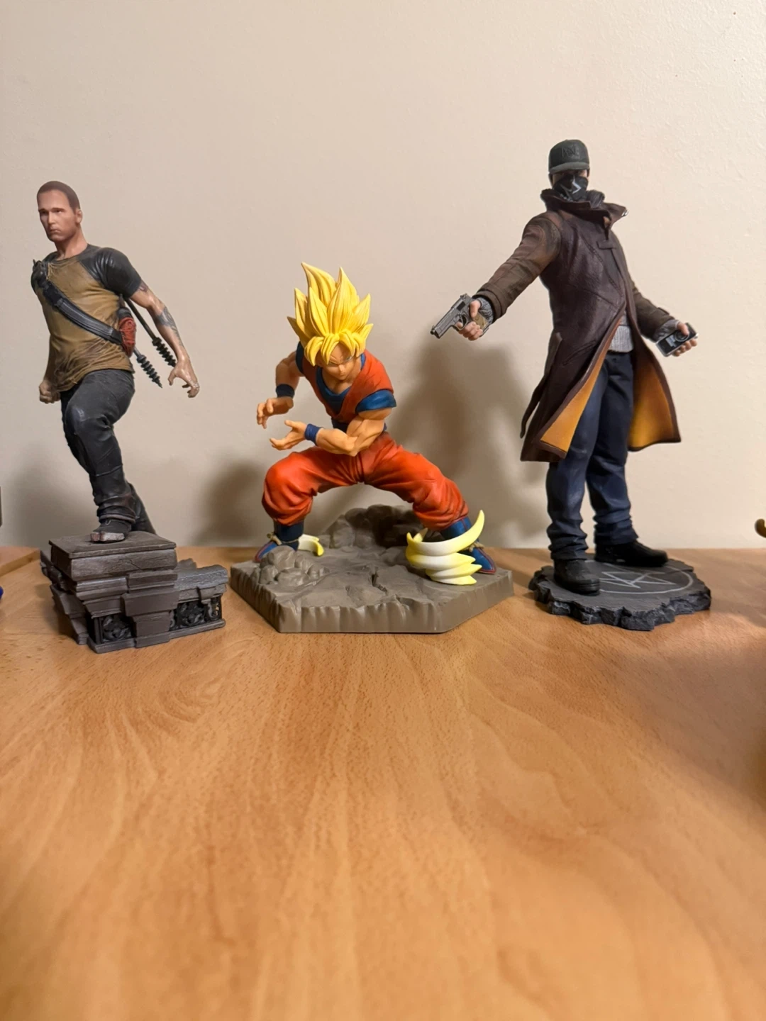 Selling three collectible figures! One is Dragon Ball Z's Goku, and the other two are from video games. All in great condition!