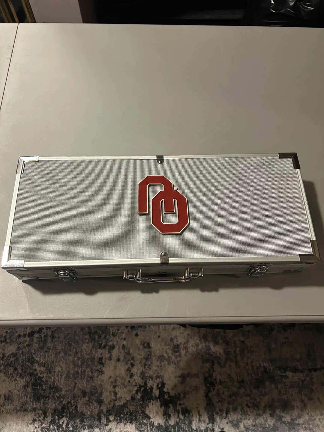 Buy & SellBBQ utensil setBBQ utensil set$20This is an eight-piece Oklahoma Sooners university-branded stainless steel BBQ utensil set in a lockable aluminum carrying case.WHERE TO MEETCheck LocationView MapSELLERKimFalconridge24927 reviews0 chats·0 favorites·11 viewsSEND CHAT TO SELLERHi Kim! I’m interested in your listing.Hi Kim! I’m interested in your listing.Get the Karrot app to chatSign In to chat