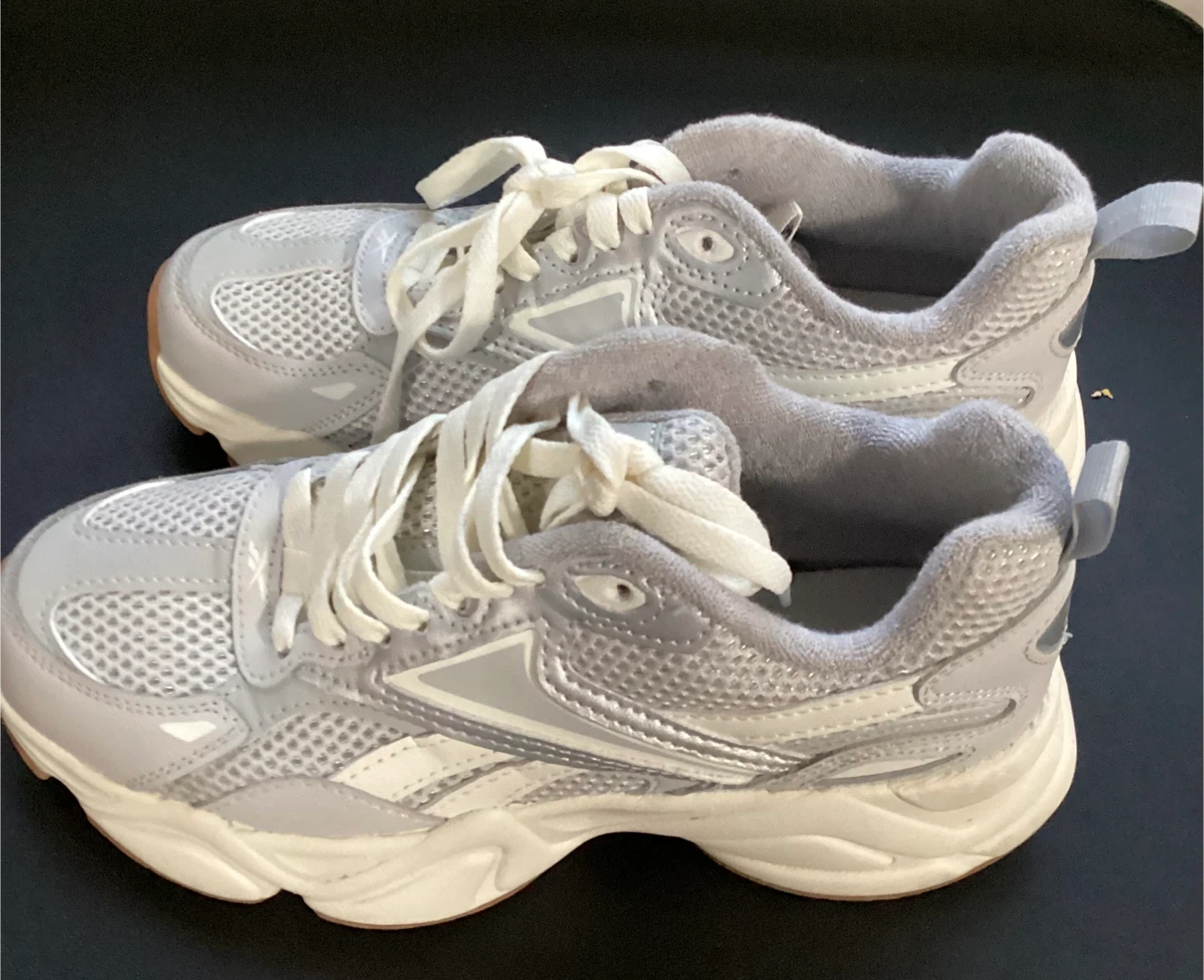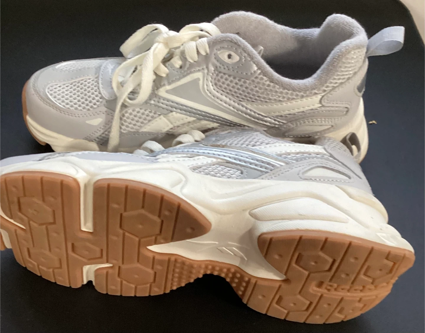 Here are some gently used Reebok sneakers in a stylish gray color! They're perfect for adding a sporty touch to your everyday look