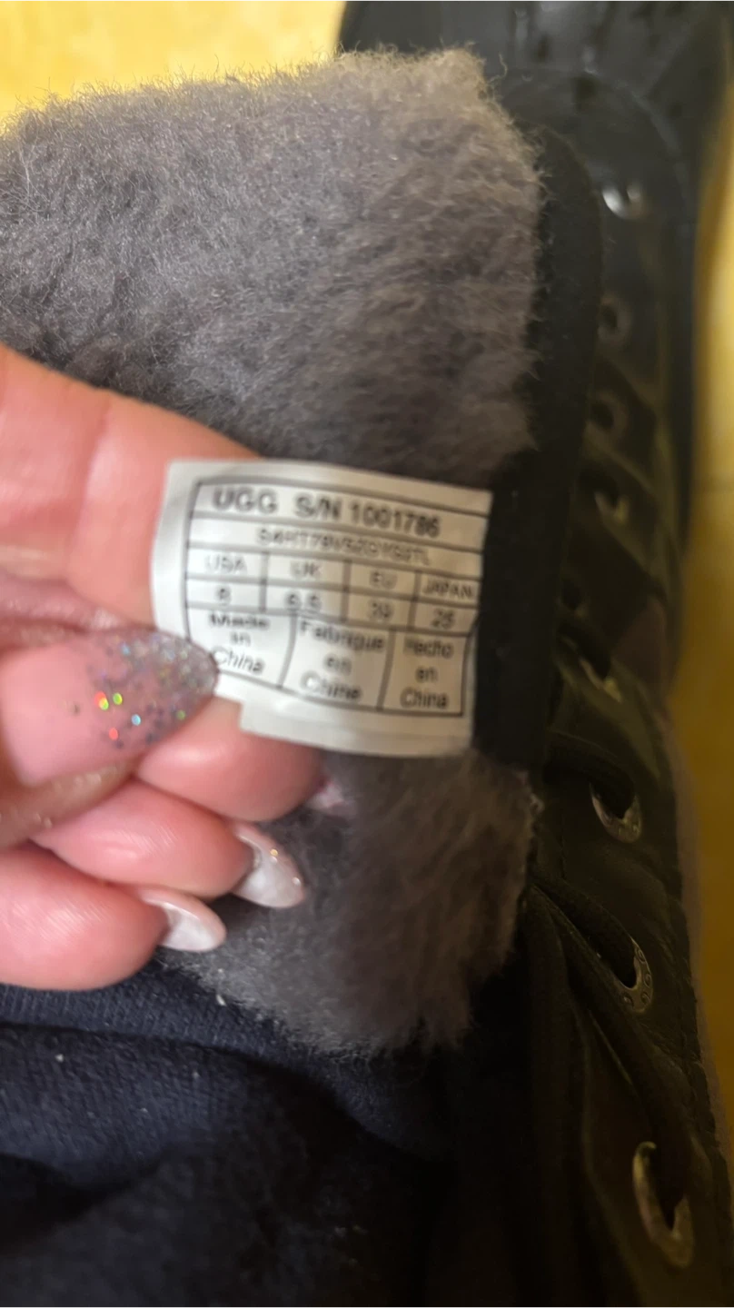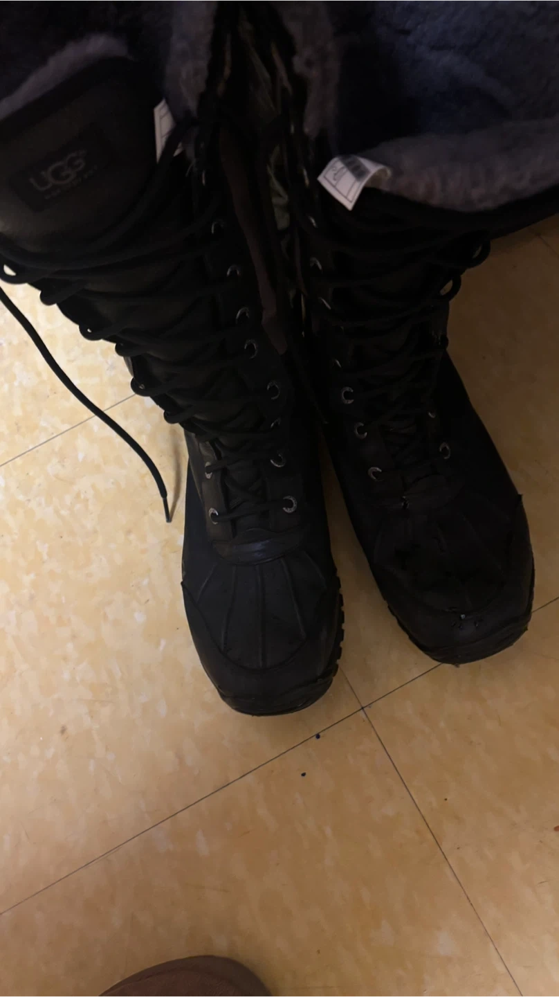 Selling a pair of UGG winter boots in black leather. They are a women's size 8 US). These boots are perfect for keeping your feet warm and dry during the cold Canadian winters!