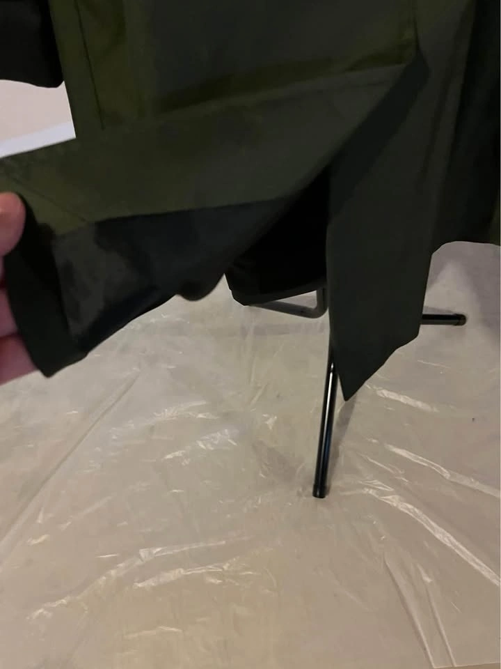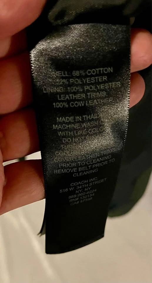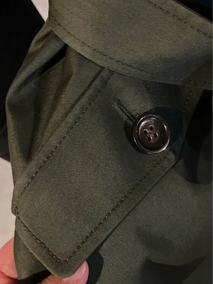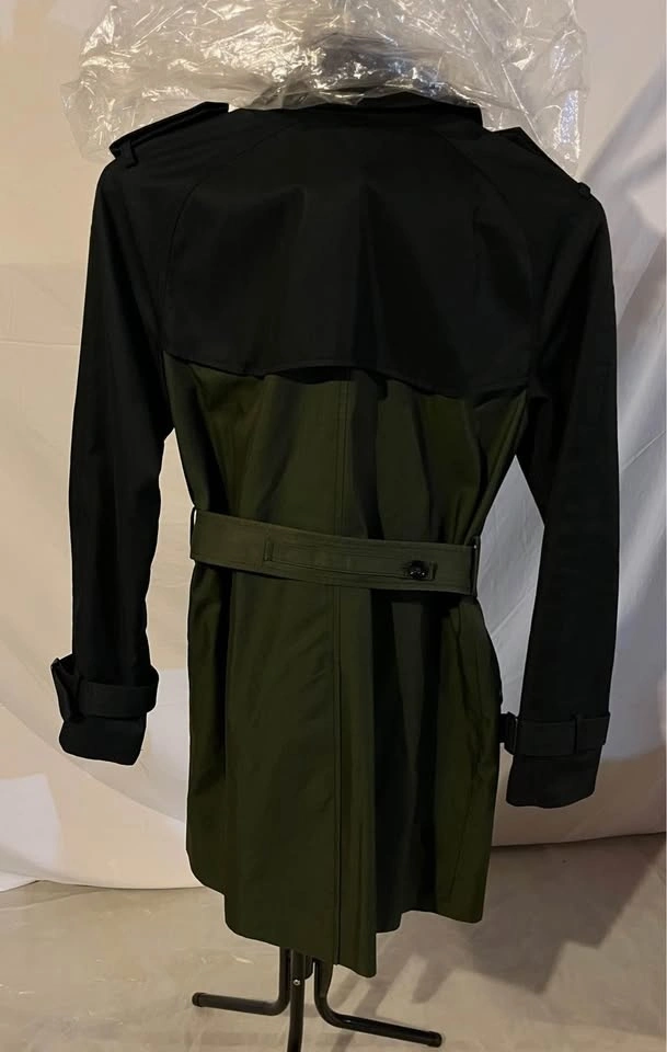 Excellent used condition. No tears, fading, stains, or other material defects. It has been dry cleaned, but can be machine washed on the delicate cycle in cold water. Size small. Black/Khaki Green (dark olive green) colour. Please refer to the last photo for measurements.