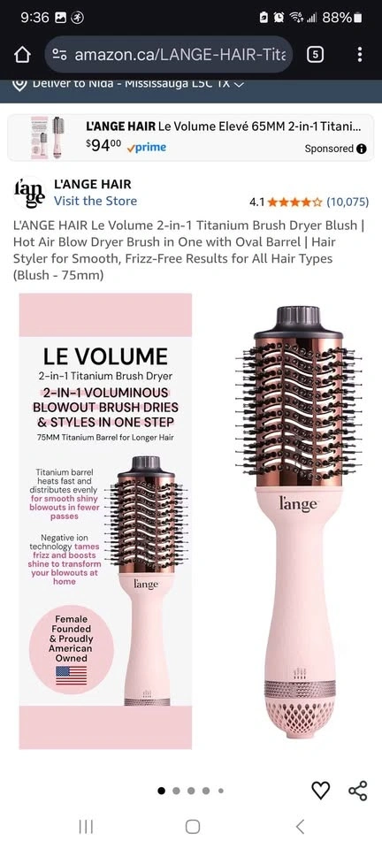 L'ANGE HAIR Le Volume 2-in-1 Titanium Brush Dryer Blush | Hot Air Blow Dryer Brush in One with Oval Barrel | Hair Styler for Smooth, Frizz-Free Results for All Hair Types (Blush - 75mm
