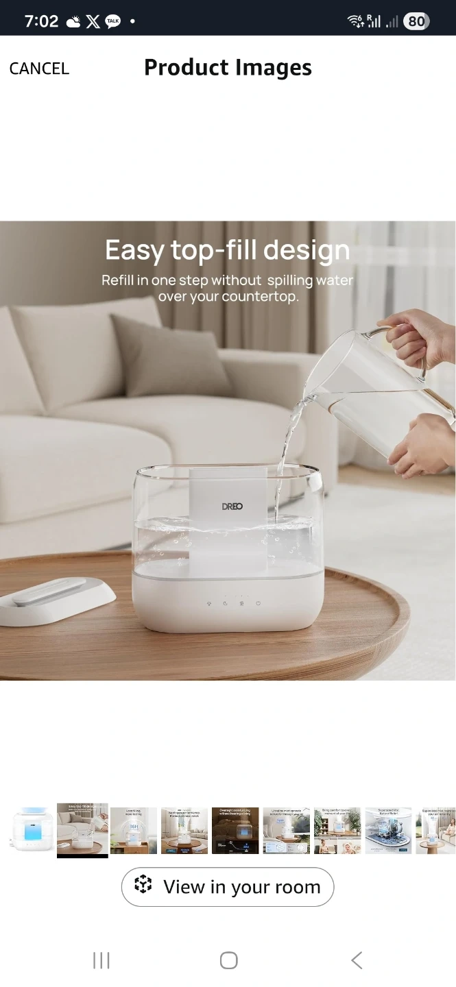 Selling a Dreo humidifier with an easy top-fill design. It's super convenient to refill in one step without spilling water. Enjoy overnight moisturizing without hearing a thing, as it operates quietly. Perfect for creating a comfortable environment!