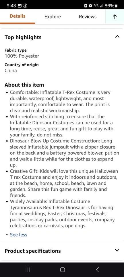 Buy & Sellinflatable dinosaur costumeinflatable dinosaur costume$45Inflatable Dinosaur Costume for Kids, Halloween Inflatable T-Rex Costume, Funny Party Cosplay Halloween Costume (Red)WHERE TO MEETCheck LocationView MapSELLER111005Erindale373 reviews0 chats·0 favorites·6 viewsSEND CHAT TO SELLERHi 111005! I’m interested in your listing.Hi 111005! I’m interested in your listing.Get the Karrot app to chatSign In to chat