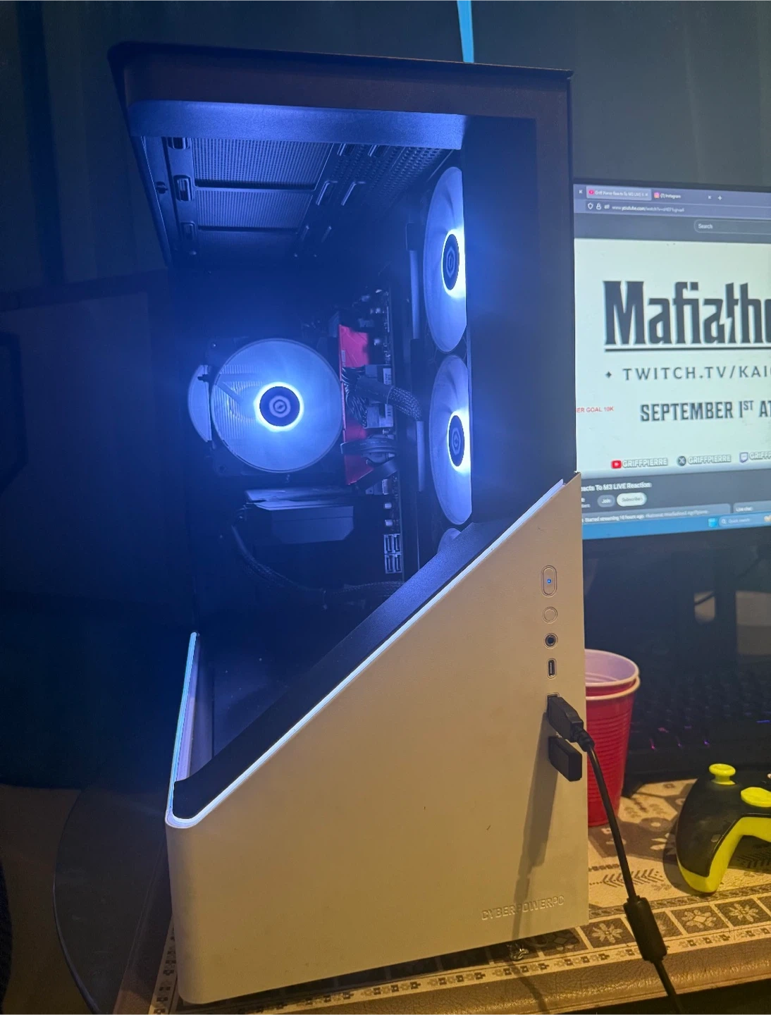 Selling a CyberpowerPC gaming PC. It features a unique case design and several cooling fans. Great for gaming or other demanding tasks! Amd 7600gpu cpu amd ryzen 7 8700