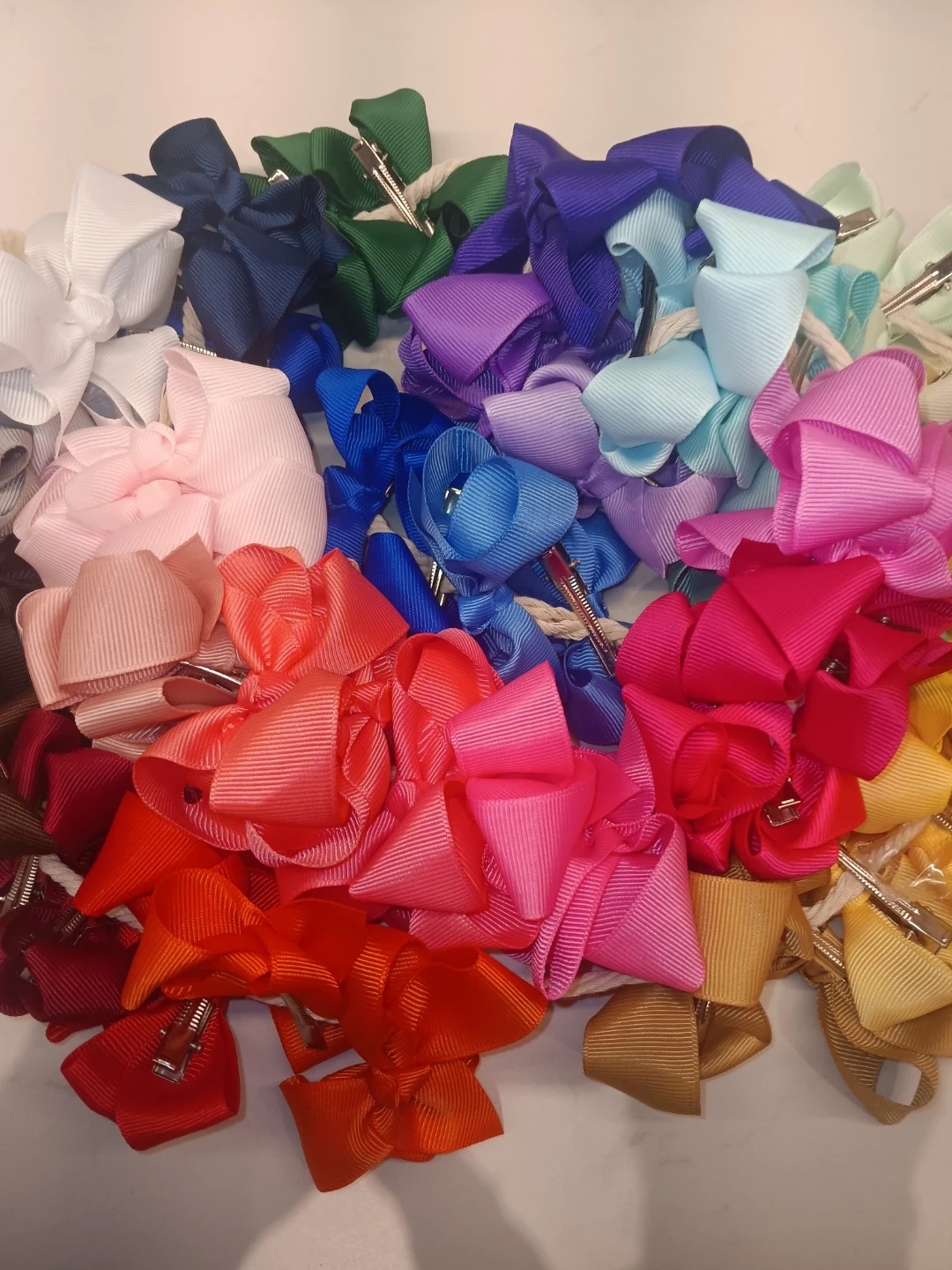 I have a collection of hair bows in various colors! They're perfect for adding a cute touch to any outfit. They're in great condition and ready for a new home! 64 bows all together.