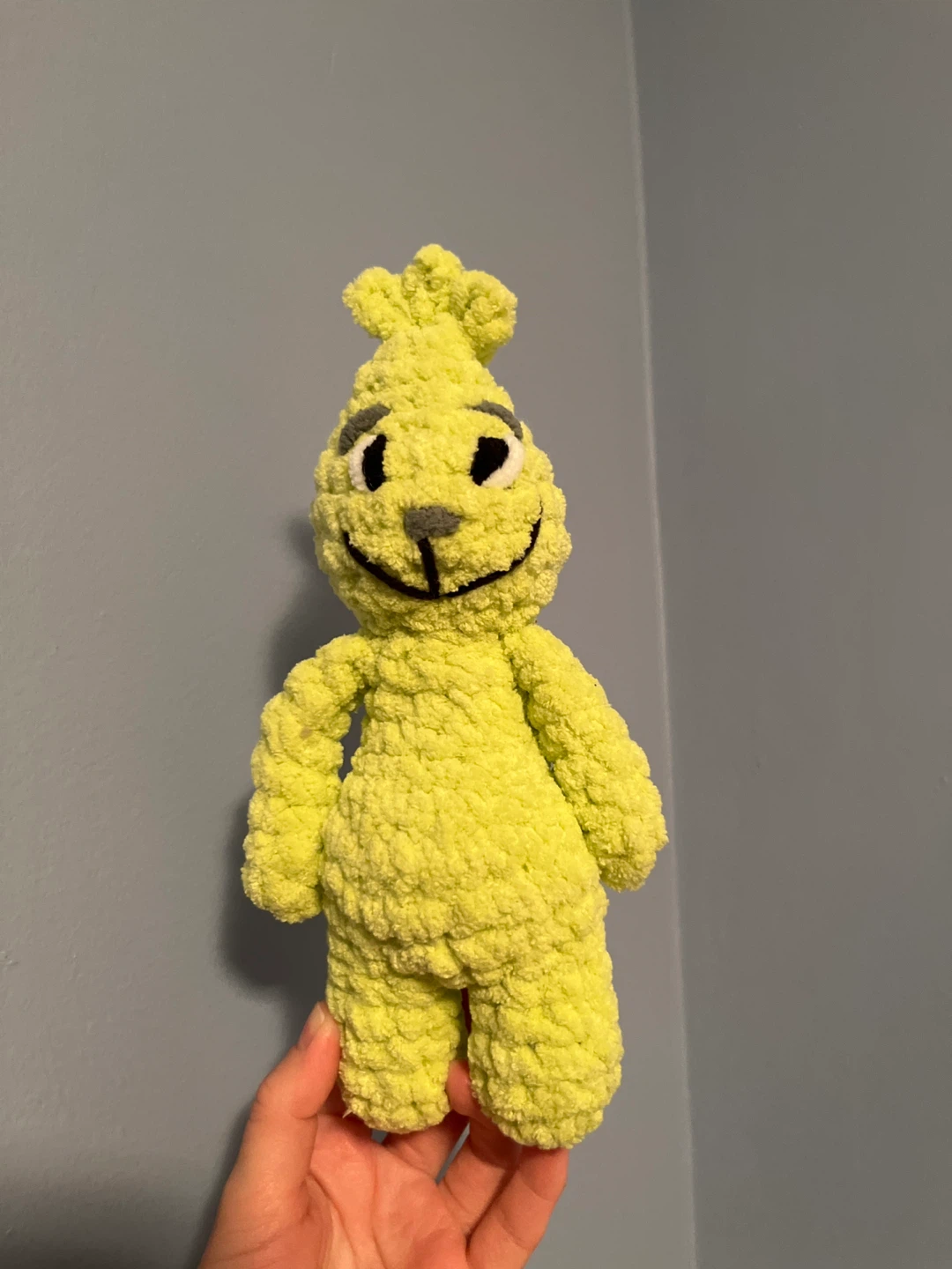 Selling a cute, handmade plush inspired by the Grinch! It's a soft, cuddly, and unique item perfect for fans of the classic story or anyone who loves decor or for a child for Christmas or their birthday.