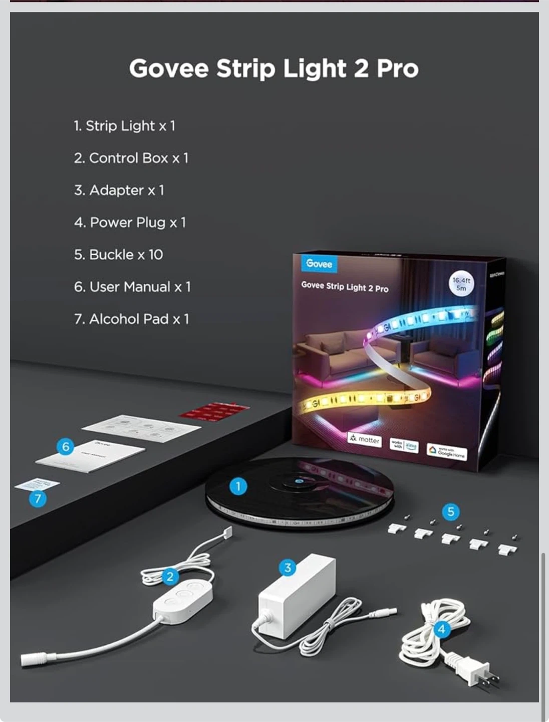 Spice up any room with the Govee Strip Light 2 Pro! It's 16.4ft (5m) long and comes with everything you need to get started: