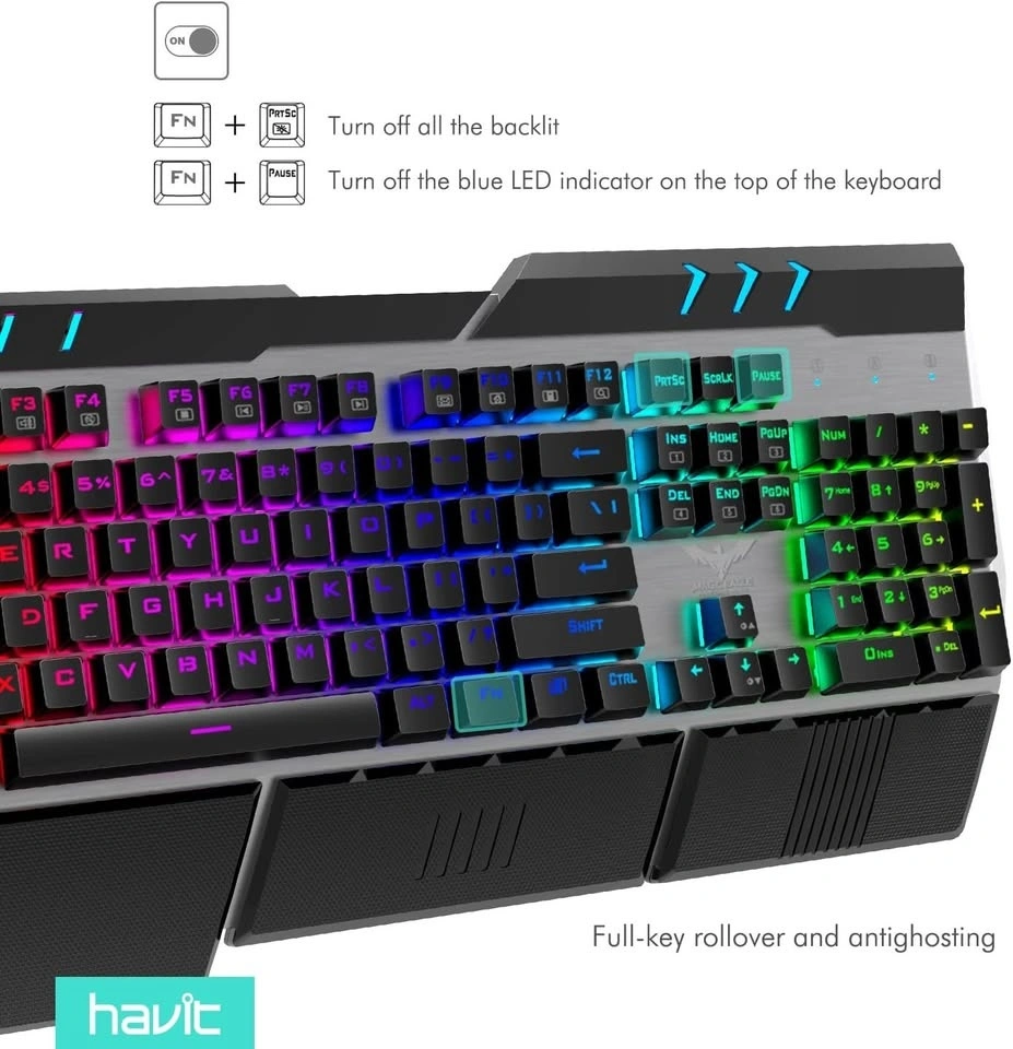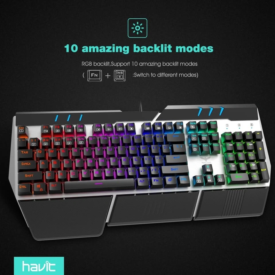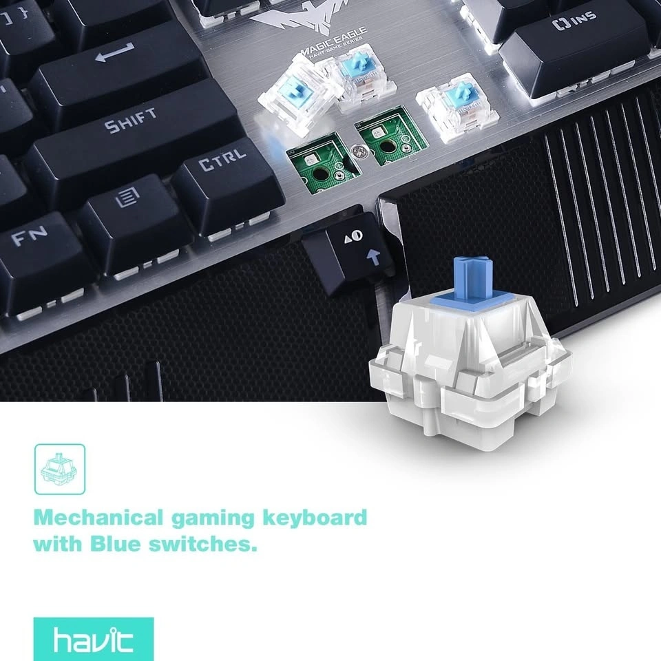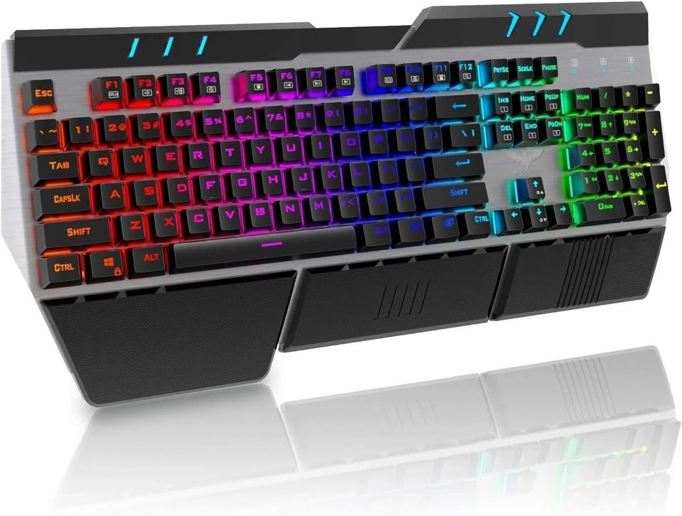 - 104 keys RGB mechanical keyboard, constructed with floating keys, blue switches (Gaote switch), plug and play, No driver needed, programming is not supported