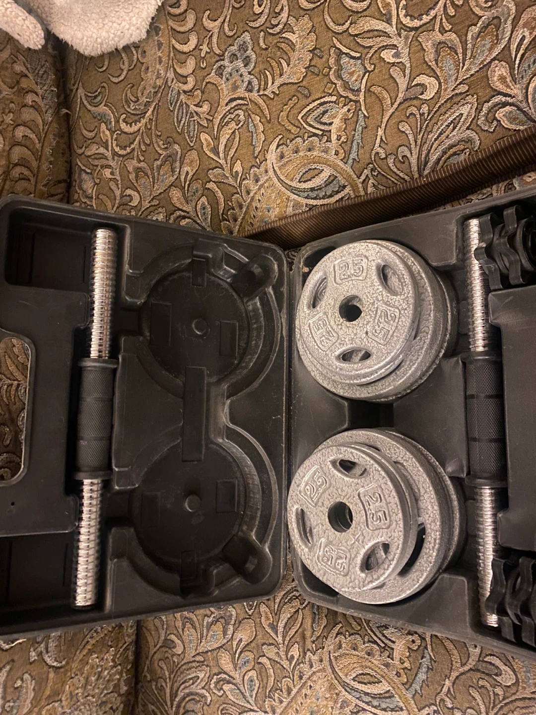 Selling an Athletic Works 40 LB (18 KG) Adjustable Dumbbell Set. It includes: