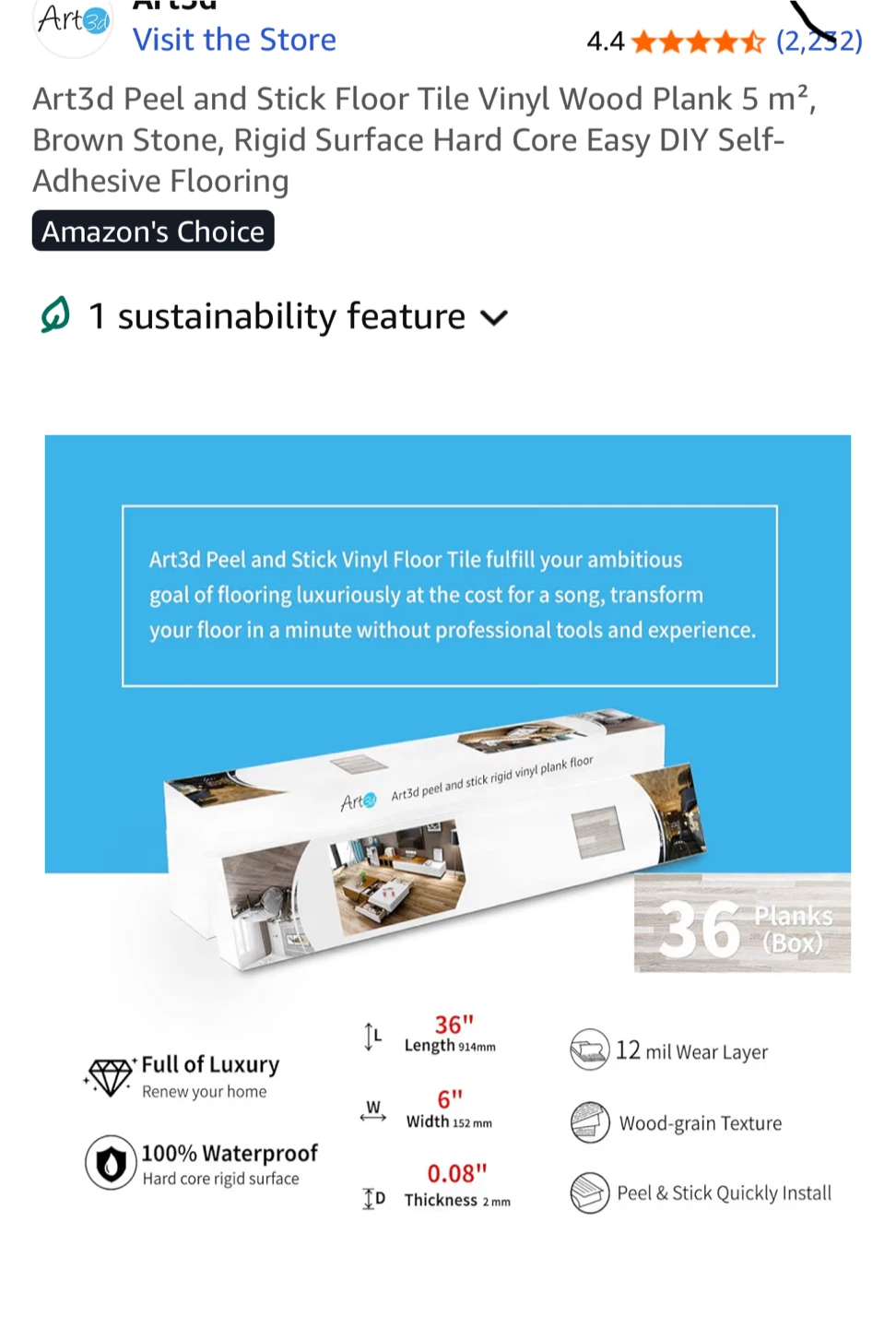 🧡 3 boxes Art3d Peel and Stick Vinyl Floor Tile - 36 in each