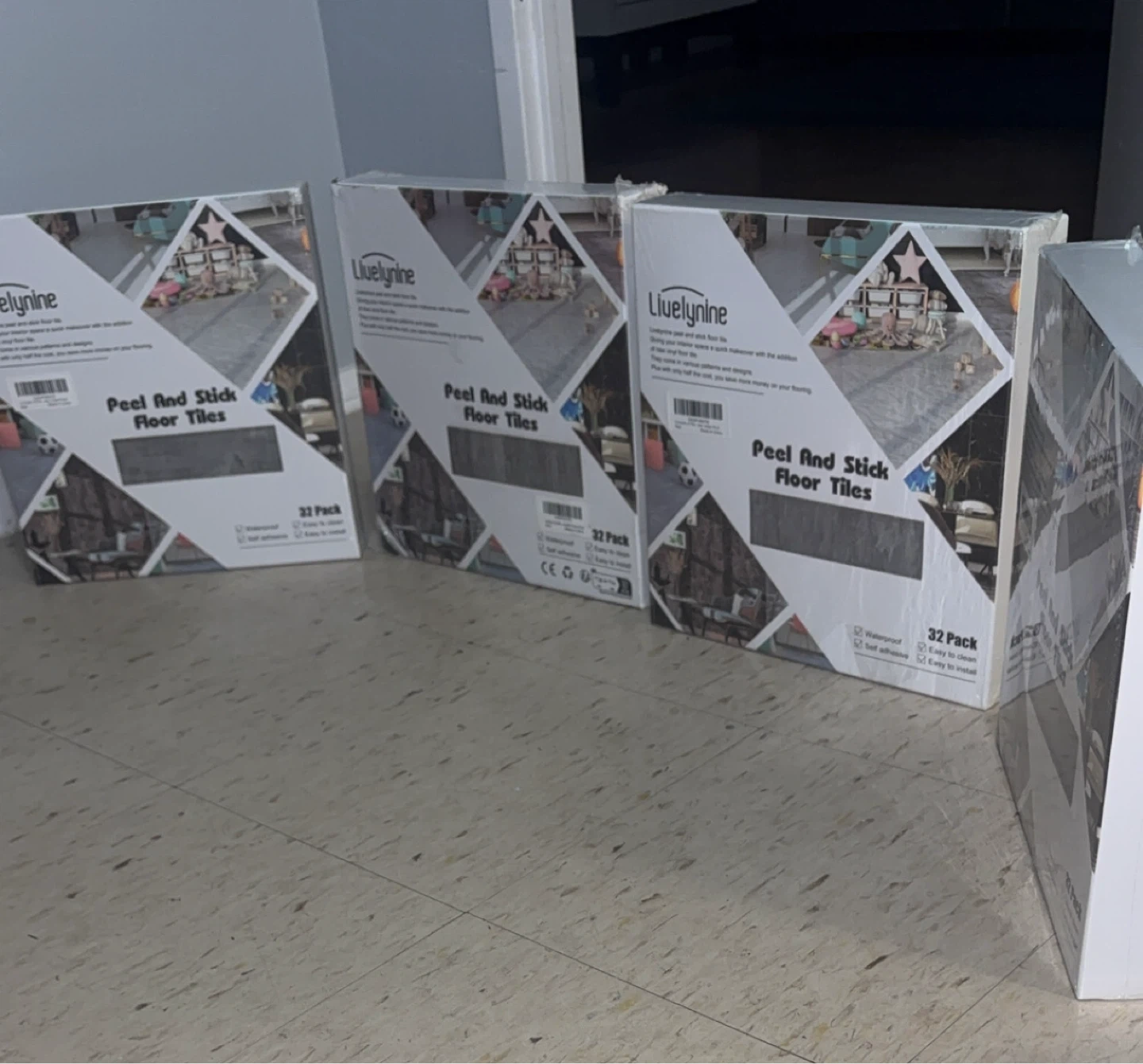 I have brand new 4 boxes Livelynine peel and stick floor tiles for sale! These are waterproof, self-adhesive, and easy to install. Each pack contains 32 tiles, perfect for a quick makeover.