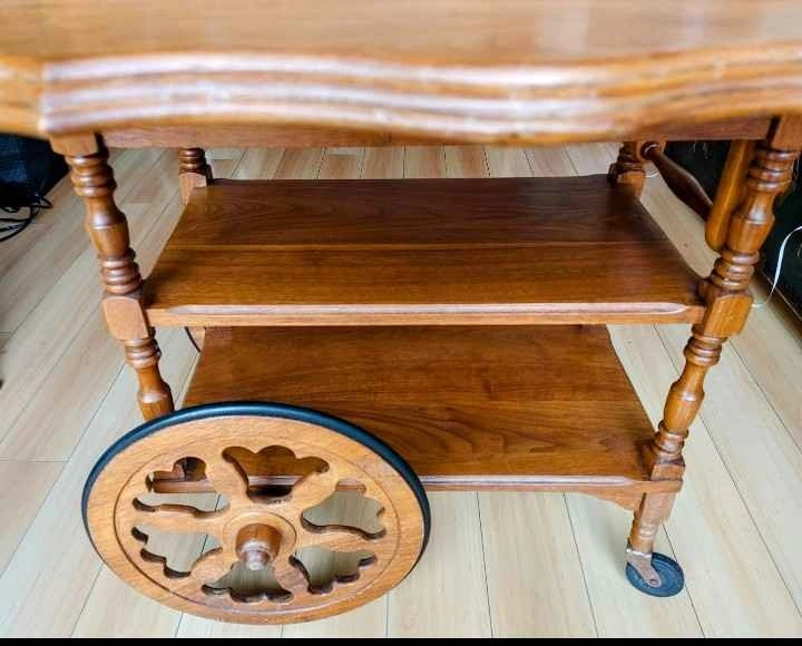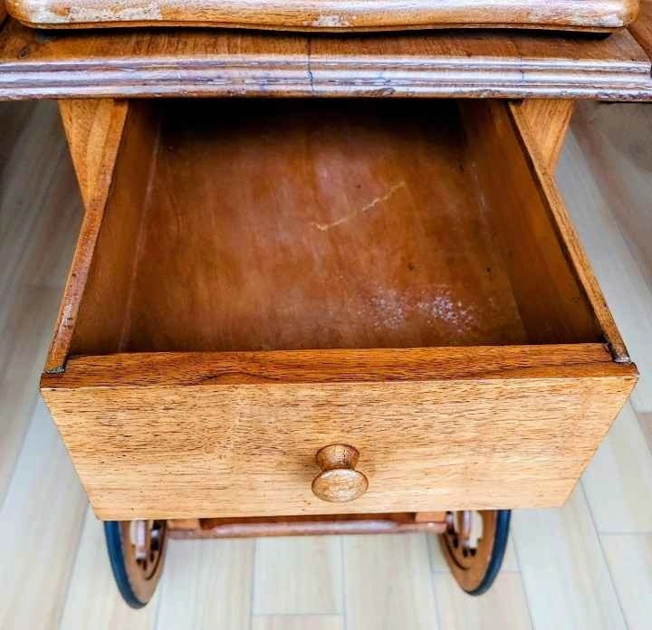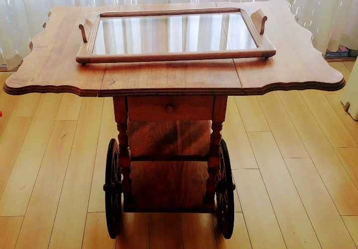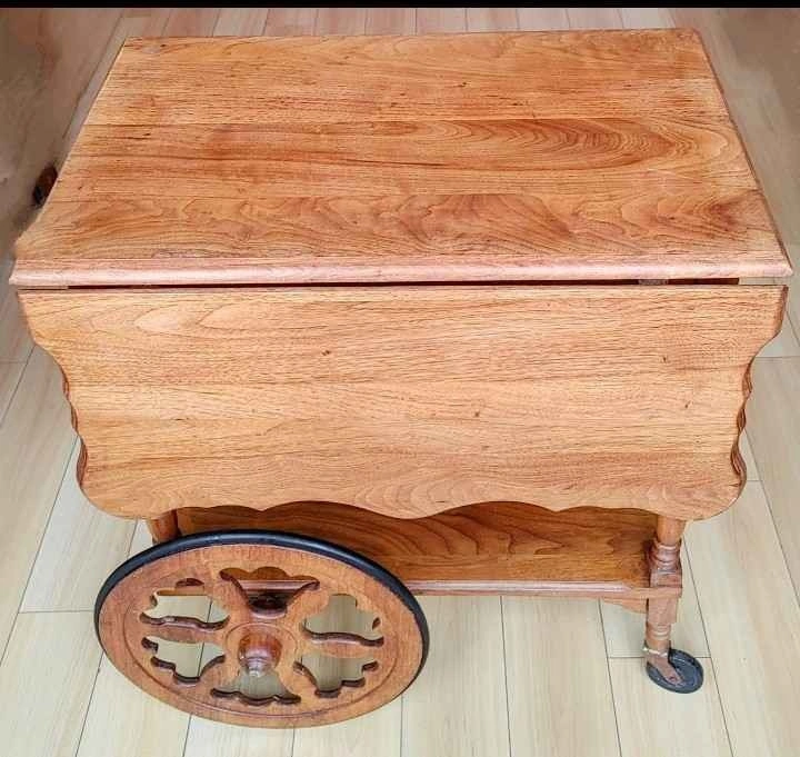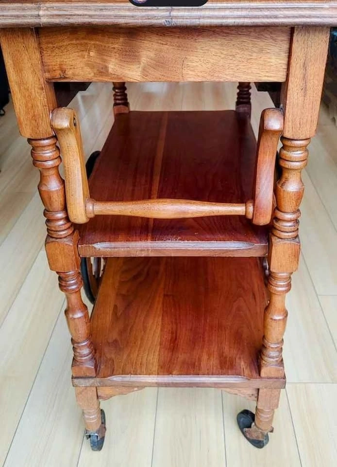 Add timeless charm and functionality to your space with this stunning vintage rolling bar or tea cart. Perfect as a home bar, dessert trolley, wedding decor, or film set prop, this piece blends classic 1930s elegance with modern-day practicality.