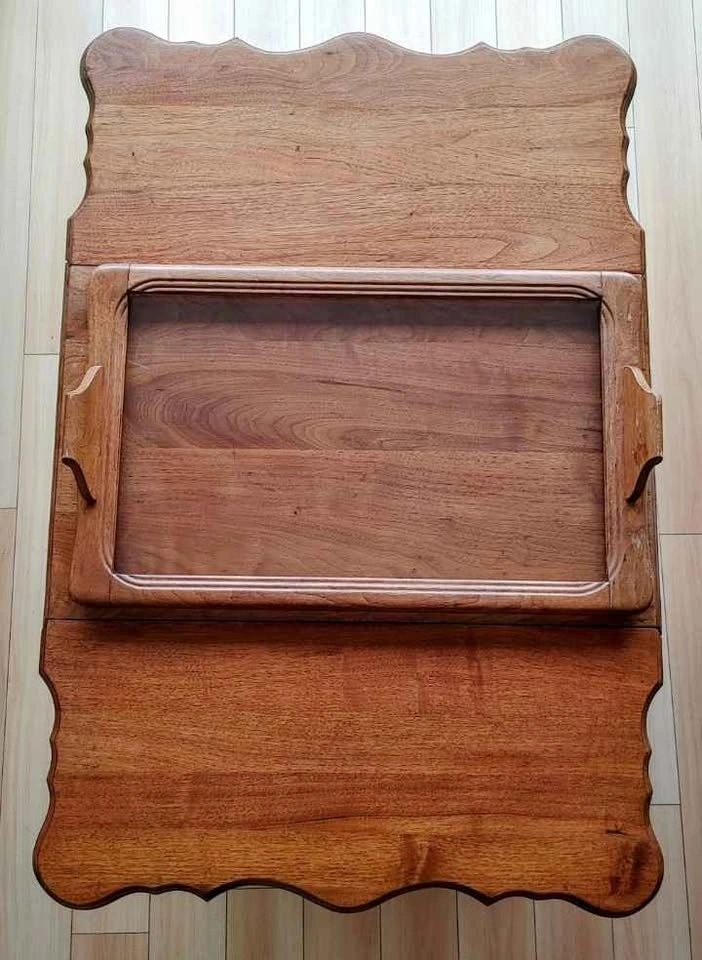 • Elegant drop-leaf design – Scalloped French-style edges, curved silhouette, and fold-out leaves for flexible use