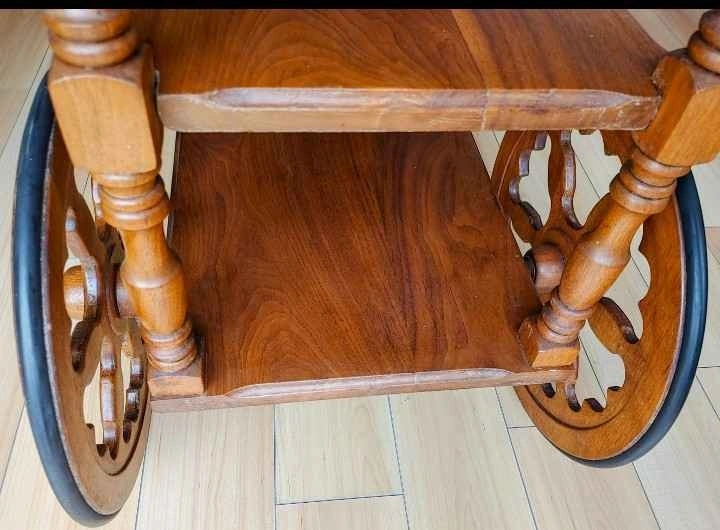 Add timeless charm and functionality to your space with this stunning vintage rolling bar or tea cart. Perfect as a home bar, dessert trolley, wedding decor, or film set prop, this piece blends classic 1930s elegance with modern-day practicality.