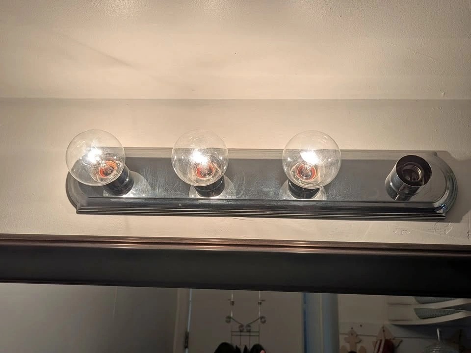 E26 base, sard size 40 watts, providing bright, warm white light (approx. 2700K) — ideal for vanities, mirrors, and vintage-style lighting.