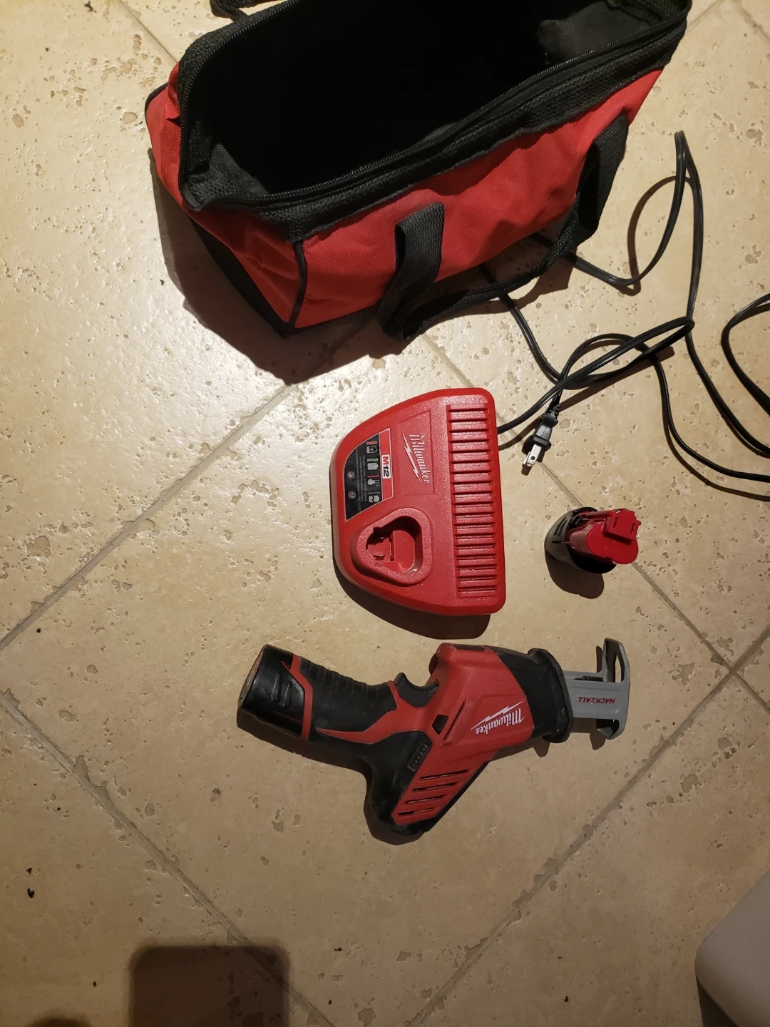 Selling a Milwaukee Hackzall M12 cordless reciprocating saw kit. It comes with the charger, two battery, and a carrying bag..only cash 💸