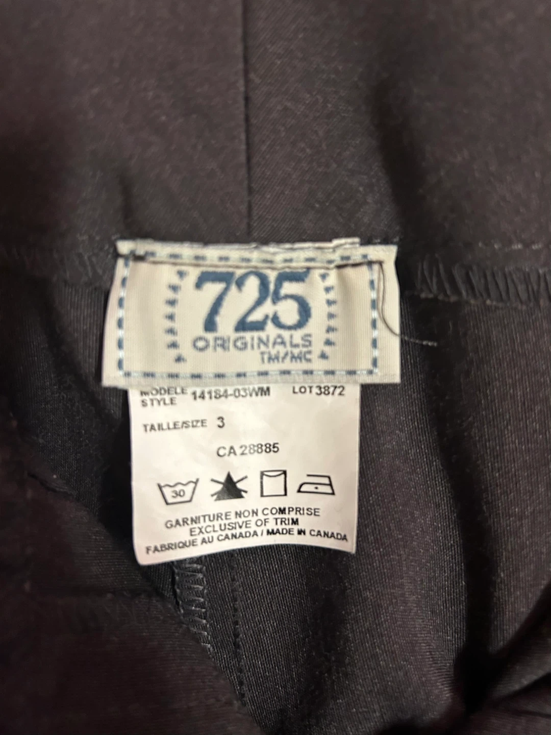 Selling a pair of 725 Originals pants in size 3. They are a stylish brown colour and in great condition. Made in Canada!