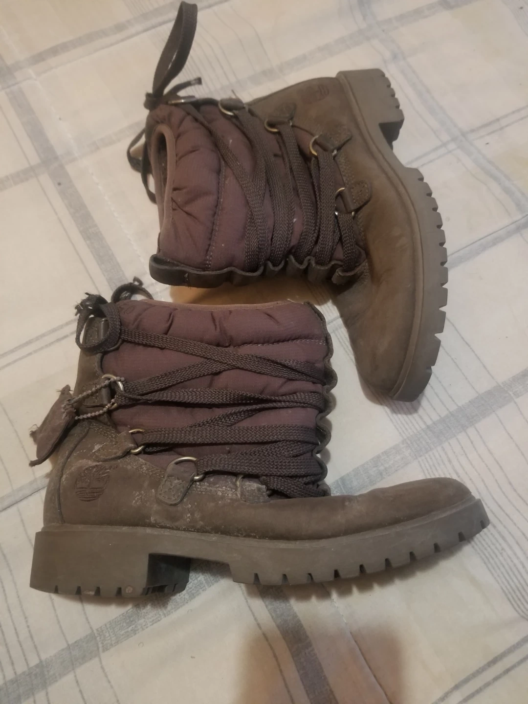 Selling a pair of Timberland boots. These are great for winter and have a unique style. They show some signs of wear, but are still in good condition and ready for the snow! Size 7/7.5 Asking Only $10 ππ