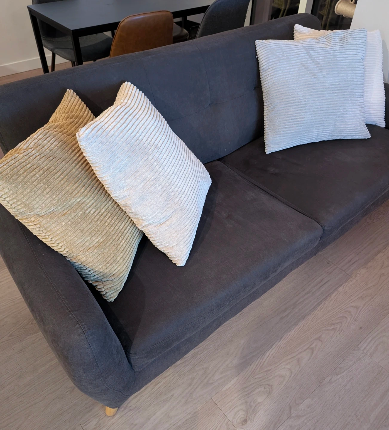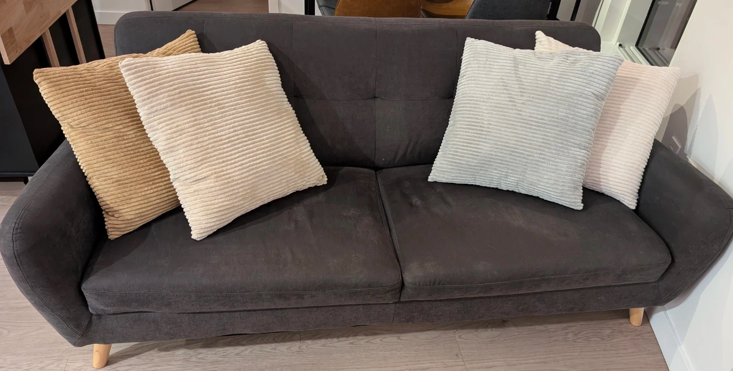Selling a comfy dark grey sofa. It's in great shape and ready for a new home! Perfect for a living room or den
