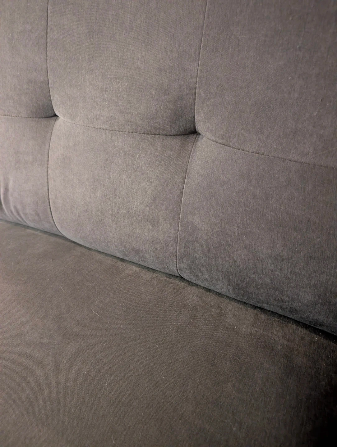 Selling a comfy dark grey sofa. It's in great shape and ready for a new home! Perfect for a living room or den