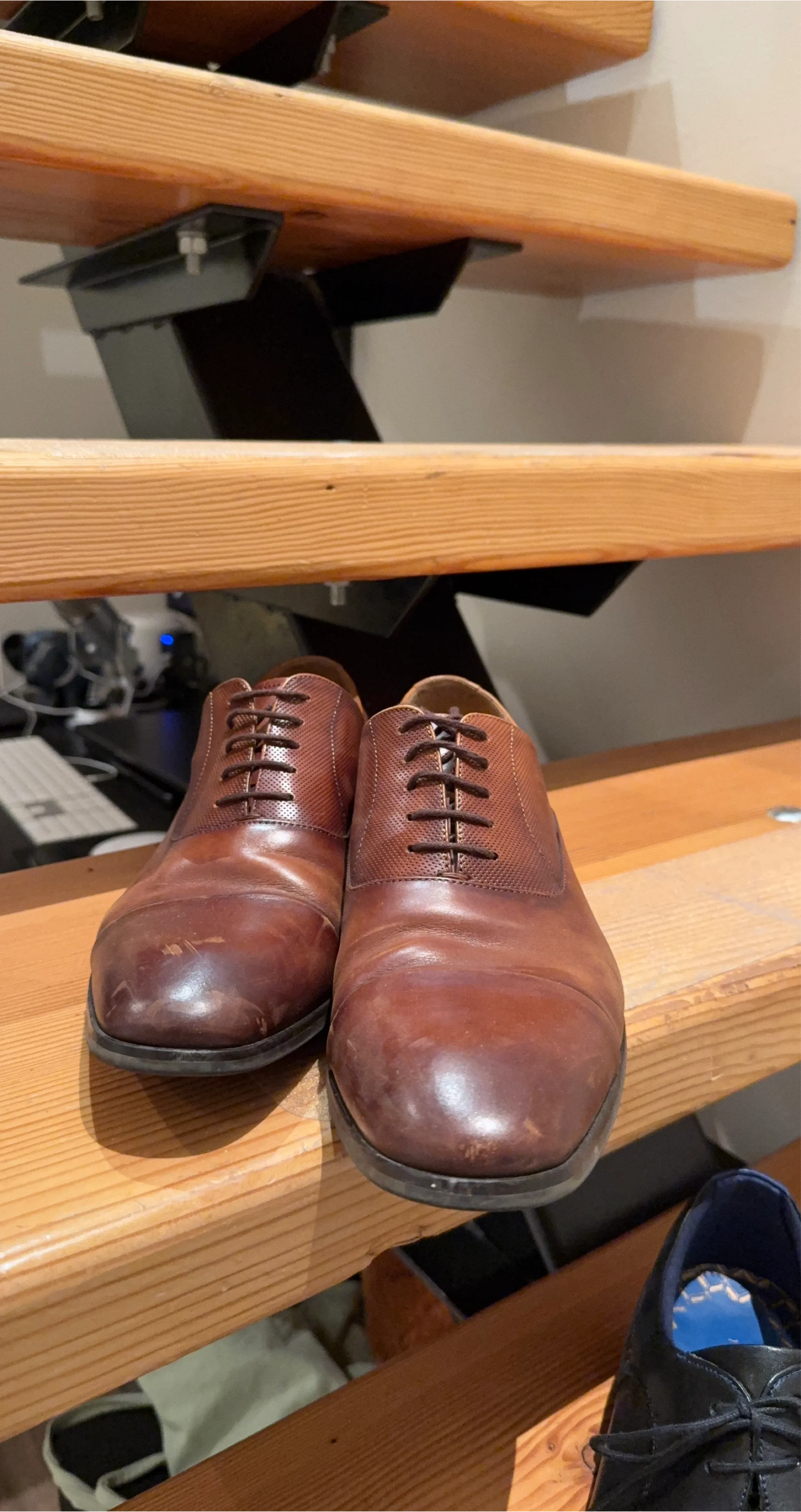 Selling a pair of brown leather dress shoes. They show some signs of wear, as you can see in the photos. Still have lots of life left!
