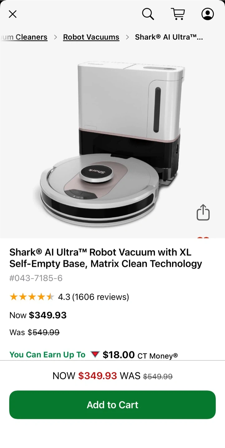 Buy & SellShark AI Ultra Robot Vacuum with XL Self-Empty BaseShark AI Ultra Robot Vacuum with XL Self-Empty Base$155Selling a Shark AI Ultra Robot Vacuum with XL Self-Empty Base. It has Matrix Clean Technology. It comes in the box.ConditionLike newBrandSharkWHERE TO MEETCheck LocationView MapSELLERverifiedRubenMarkham E27821 reviews0 chats·0 favorites·8 viewsSEND CHAT TO SELLERHi Ruben! I’m interested in your listing.Hi Ruben! I’m interested in your listing.Get the Karrot app to chatSign In to chat