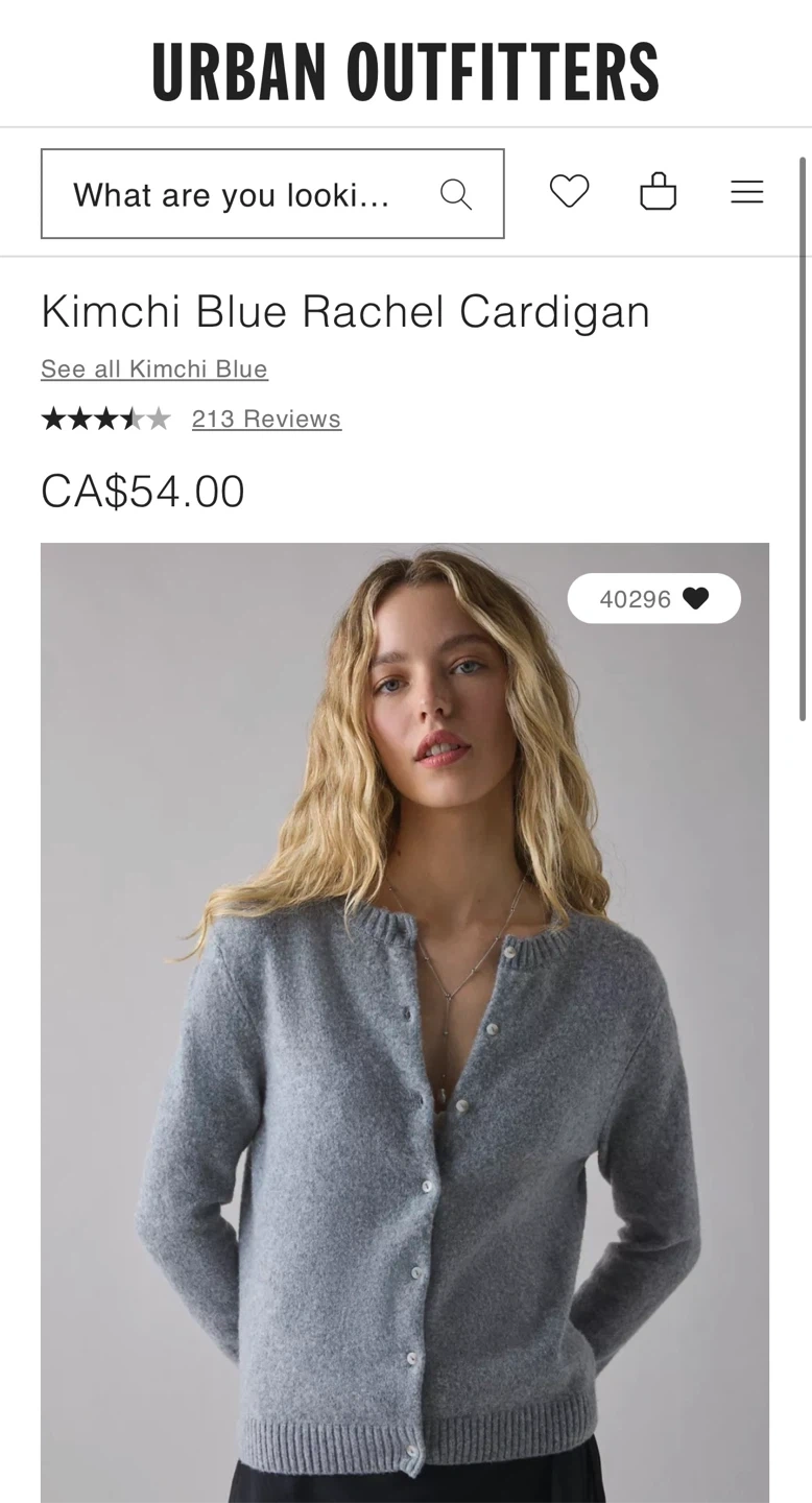 Buy & SellKimchi Blue Rachel Cardigan - Urban OutfittersKimchi Blue Rachel Cardigan - Urban Outfitters$40Originally bought for $54 CAD before tax Worn once Size SConditionLike newSizeSBrandUrban OutfittersWHERE TO MEETWAVES CoffeeView MapSELLERBlackstarDowntown796 reviews0 chats·0 favorites·10 viewsSEND CHAT TO SELLERHi Blackstar! I’m interested in your listing.Hi Blackstar! I’m interested in your listing.Get the Karrot app to chatSign In to chat