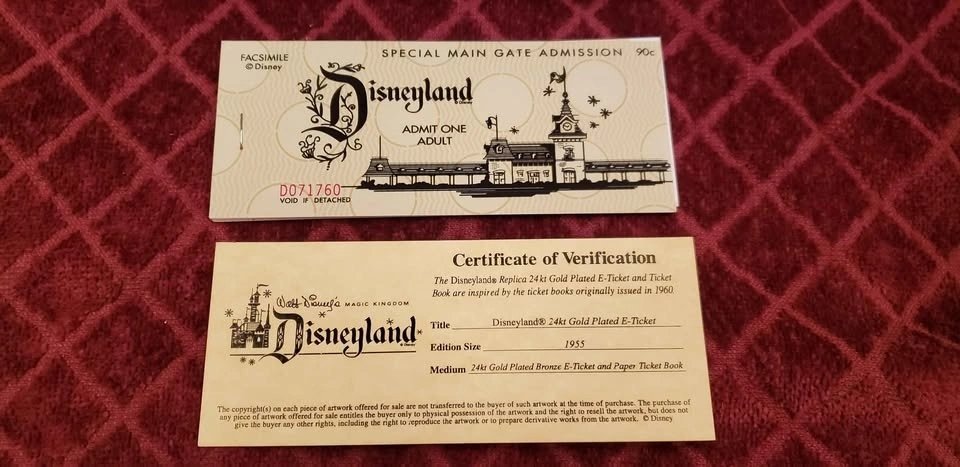 Buy & SellDisneyland 24kt gold plated e-ticket 1955 editionDisneyland 24kt gold plated e-ticket 1955 edition$800Disneyland replica 24 kt gold plated bronze e-ticket and paper ticket book. Let me know if you're interested!WHERE TO MEETCheck LocationView MapSELLERJPCloverdale100 reviews0 chats·0 favorites·32 viewsSEND CHAT TO SELLERHi JP! I’m interested in your listing.Hi JP! I’m interested in your listing.Get the Karrot app to chatSign In to chat