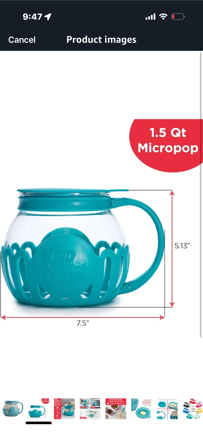 I'm selling a Micropop Microwave Popcorn Popper! It makes up to 1.5 quarts of popcorn and is easy to use. It measures 5.13" tall and 7.5" wide. Enjoy fresh popcorn in minutes!