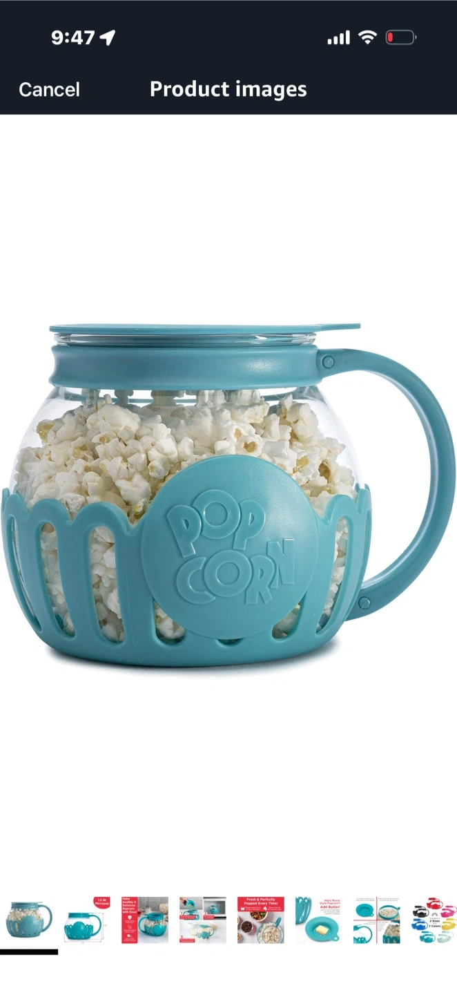 I'm selling a Micropop Microwave Popcorn Popper! It makes up to 1.5 quarts of popcorn and is easy to use. It measures 5.13" tall and 7.5" wide. Enjoy fresh popcorn in minutes!