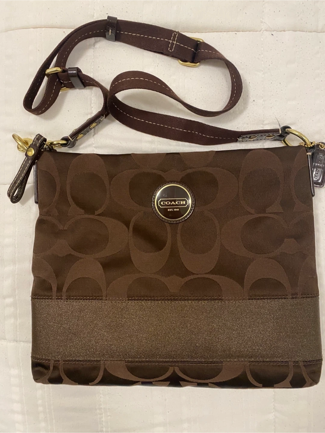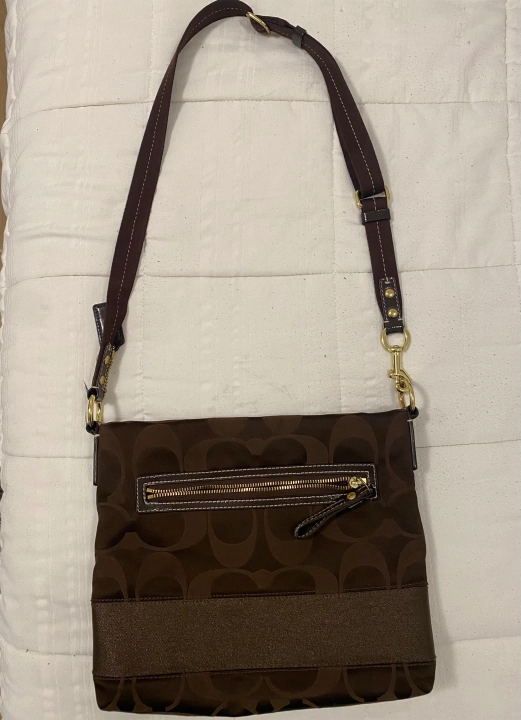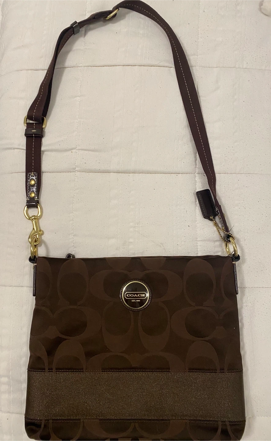 Selling a gently used Coach crossbody bag in brown. It's in great condition and has a stylish design. Perfect for everyday use!