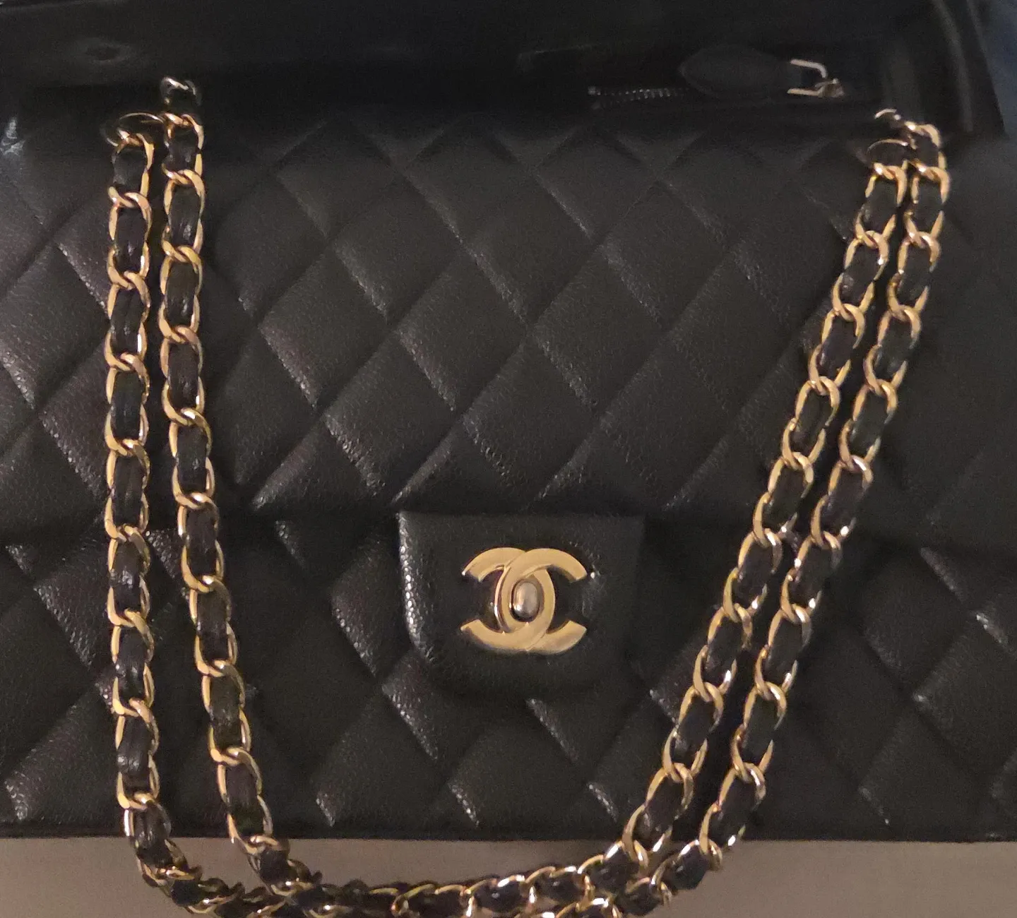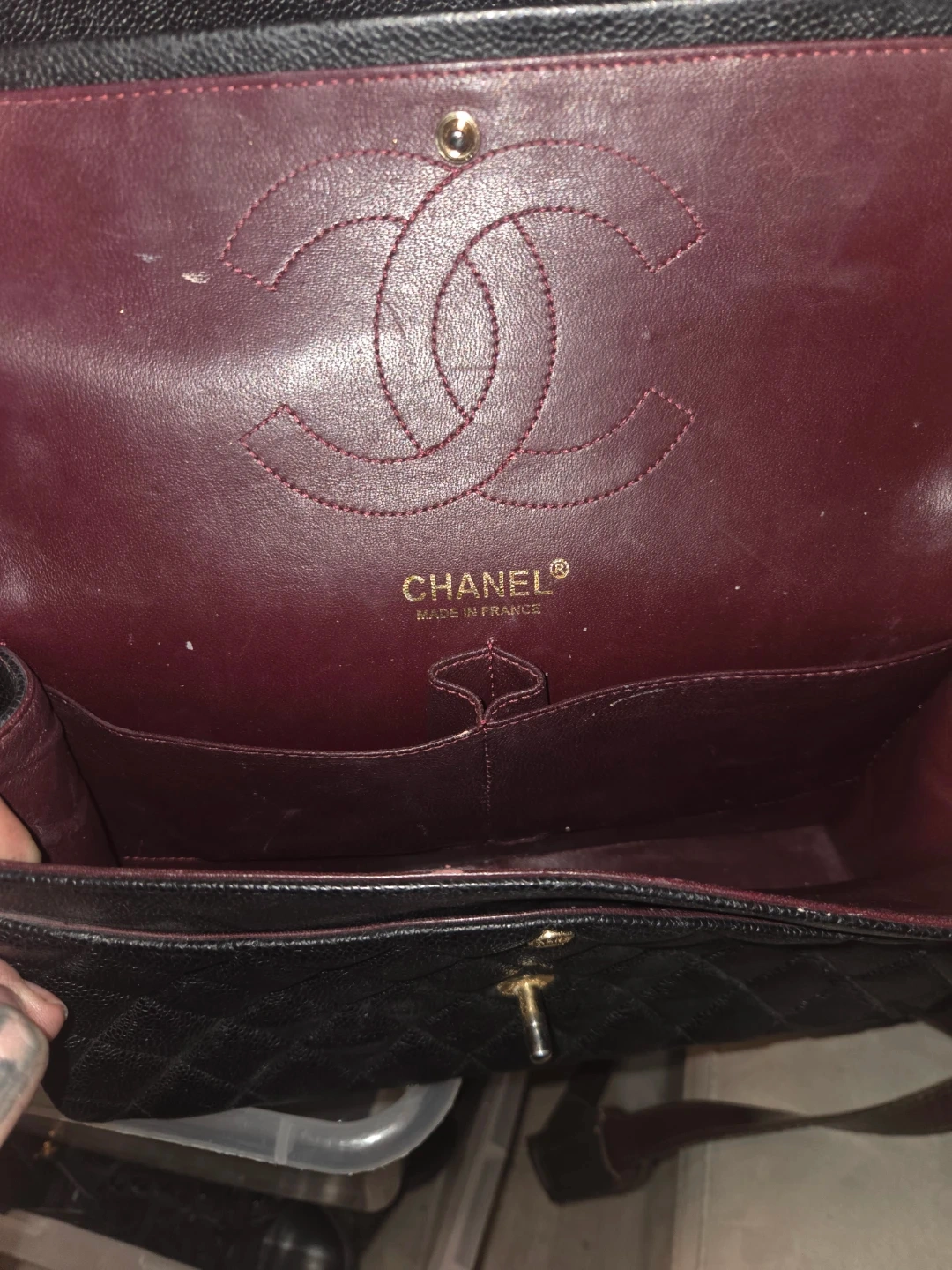 Selling a beautiful Chanel handbag, perfect for adding a touch of elegance to any outfit. It features the classic quilted design and the iconic Chanel logo. The interior is lined with a lovely burgundy leather. A timeless piece!