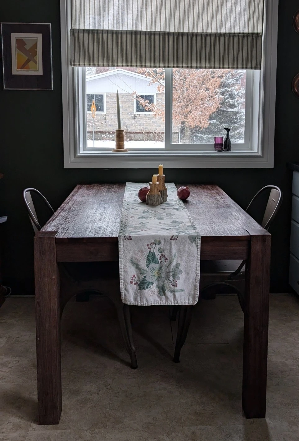 Selling a solid wood dining table. Bought it from structube about 5 years ago. In good condition with a few scuffs, but otherwise well maintained. Great for smaller spaces!