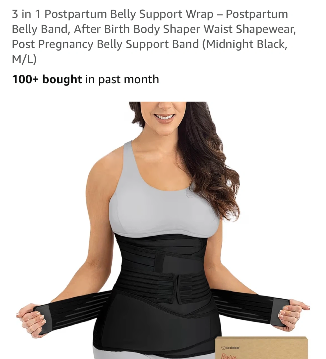 Selling a 3 in 1 postpartum belly support wrap in midnight black, size M/L. It's designed as a belly band, after-birth body shaper, and waist shapewear to provide support after pregnancy