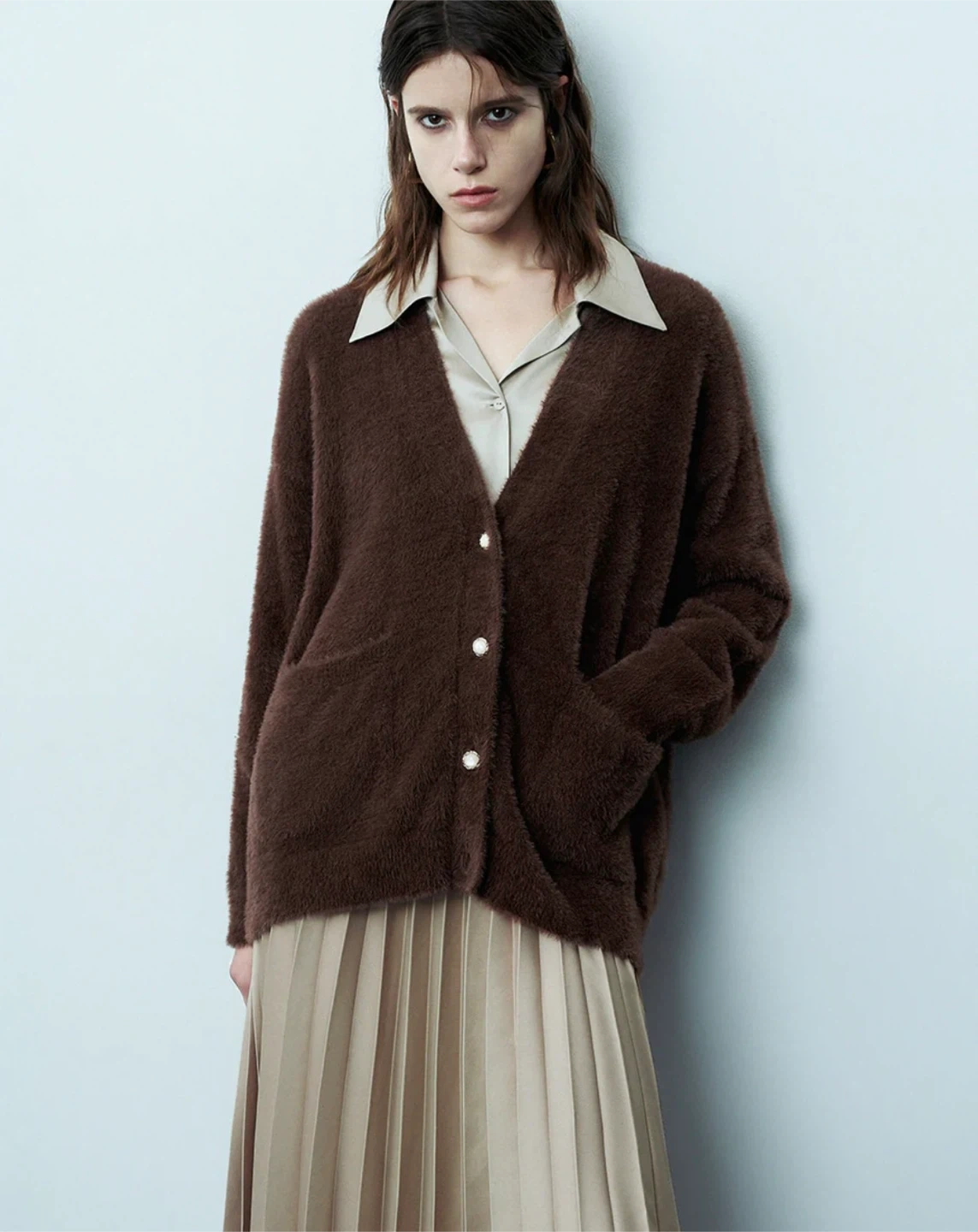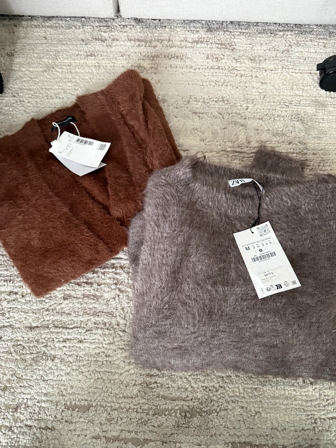 Cozy up with this Zara faux fur knit sweater. It's a size M and features a unique, soft texture. Perfect for adding a touch of warmth and style to your wardrobe. Also a UO fur pearl button cardigan in size S