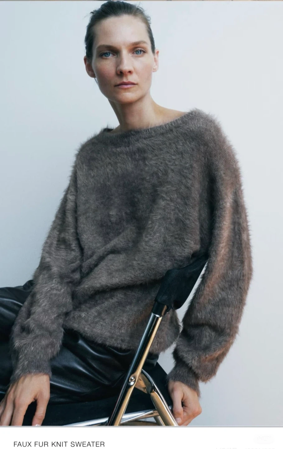 BOGO: Soft Faux Fur Knit Sweater - Size S/M