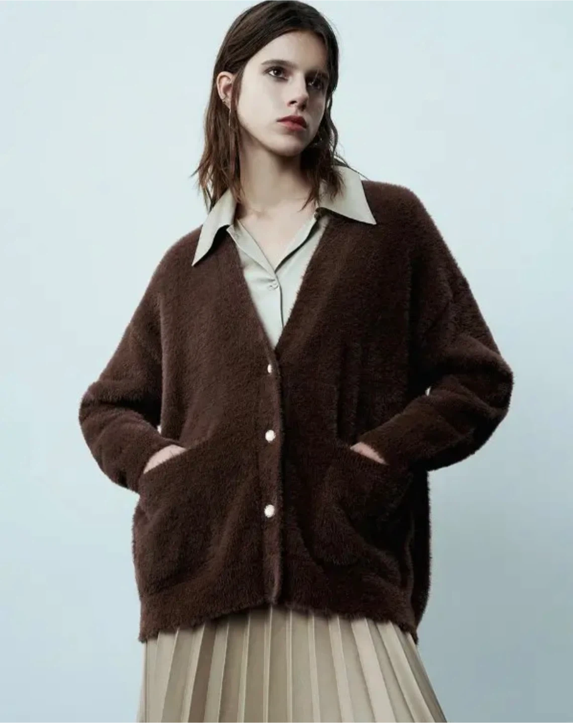 Cozy up with this Zara faux fur knit sweater. It's a size M and features a unique, soft texture. Perfect for adding a touch of warmth and style to your wardrobe. Also a UO fur pearl button cardigan in size S
