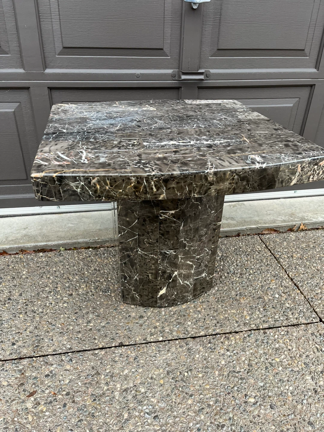 Stylish side table with a unique marble pattern! It's in good condition and ready to add a touch of elegance to your space.