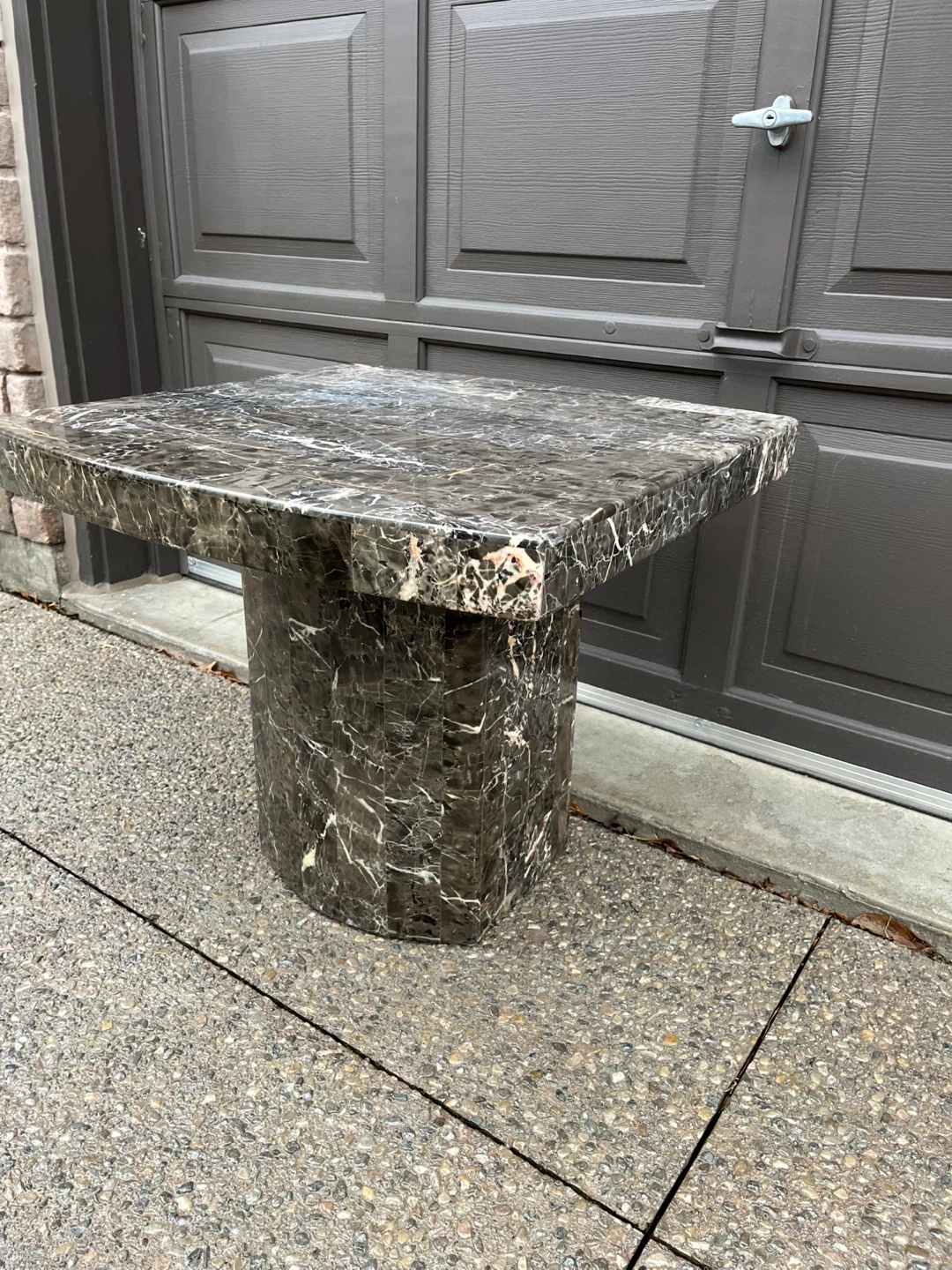 Stylish side table with a unique marble pattern! It's in good condition and ready to add a touch of elegance to your space.